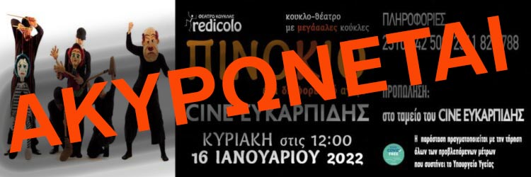 Ακύρωση Παιδικής Παράστασης – “Ο ΠΙΝΟΚΙΟ ΕΝΑ ΔΙΑΦΟΡΕΤΙΚΟ ΑΓΟΡΙ”
