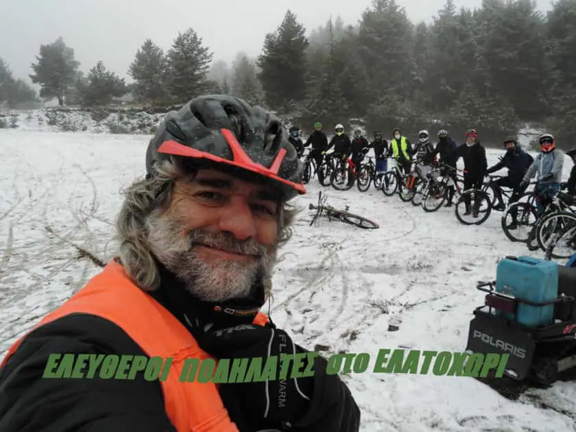 Προσοχή : πρέπει να έχετε δικό σας ποδήλατο, καλοσυντηρημένο με τρακτερωτά – καινούρια ,όχι φαγωμένα, λιωμένα ή sleek ελαστικά. Συνάντηση στο Cafe-bar Andromeda Ελατοχωρίου Τετάρτη 9/2 μετά τις 11.00 πμ . (στην αρχή του δρόμου προς το χιονοδρομικό – δεξιά.)