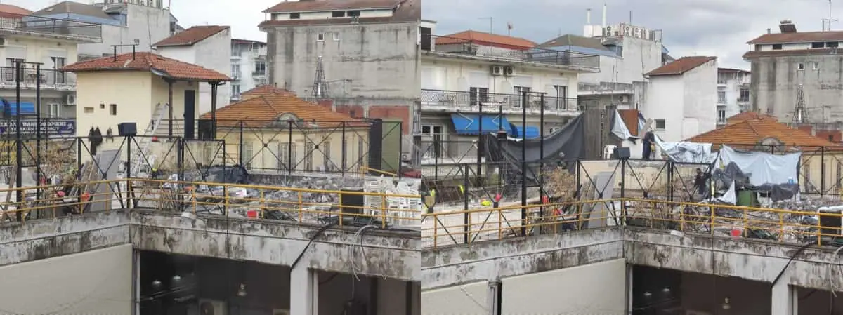 Επιπλέον, θα ακολουθήσει αφενός, η κατασκευή ενισχυμένης τσιμεντοκονίας με προσθήκη ινών εμβαδού 545,9 τ.μ., η κατασκευή 4 φρεατίων απορροής πάνω στο δώμα και 10 φρεατίων πάνω στους προβόλους, με στεγανοποίηση των φρεατίων. Επίσης, η ενίσχυση στηρίξεων των πλακών δώματος και η αποκατάσταση υποστυλωμάτων και πλακών σε όλες τις στάθμες του κτιρίου.