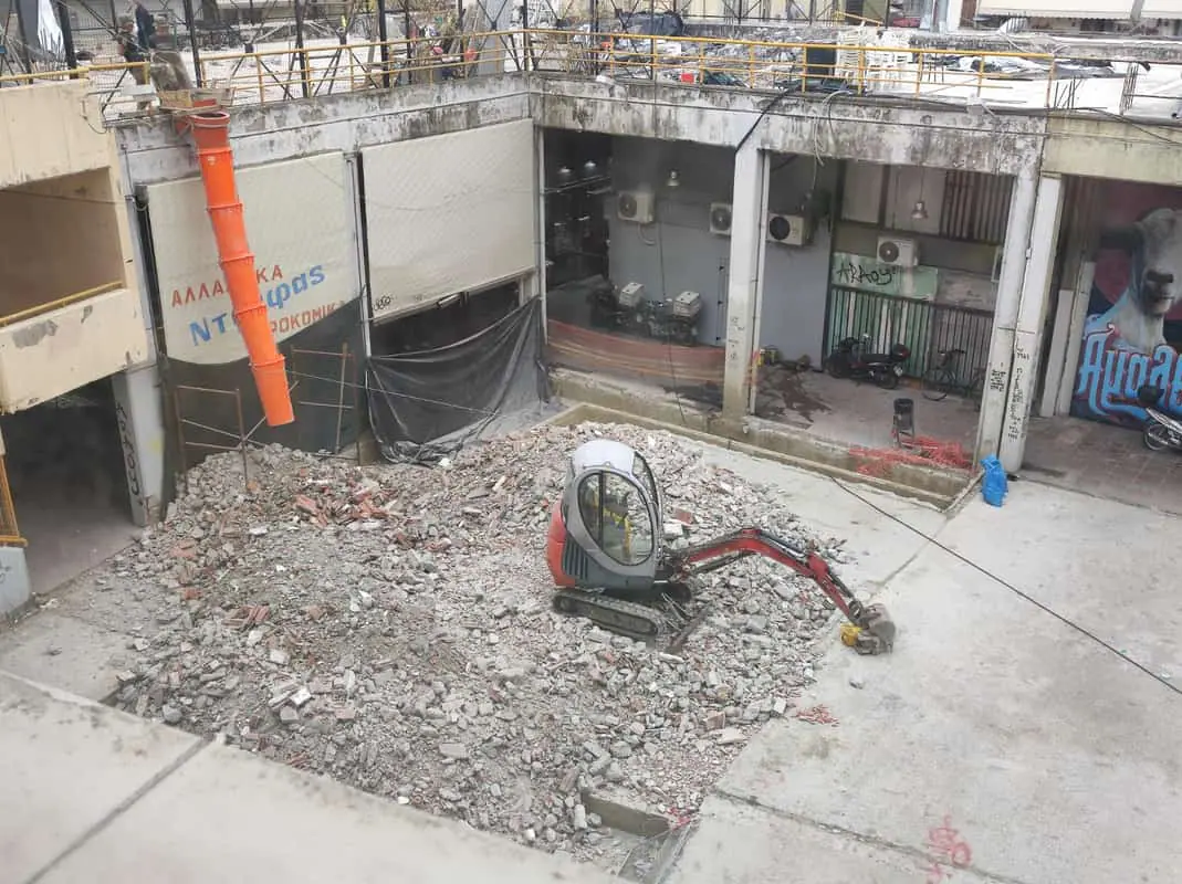 Εν συνεχεία και σύμφωνα με μελέτη που εκπονήθηκε για την στατική ανάλυση και τον έλεγχο των δομικών στοιχείων του κτιρίου, οι κατασκευές στο δώμα (χώροι κινηματοθεάτρου) φορτίζουν υπέρμετρα τις υποκείμενες πλάκες, οι οποίες παρουσιάζουν μειωμένους συντελεστές ασφαλείας σε σχέση με τους προδιαγραφόμενους. Στο πλαίσιο αυτό, ξεκίνησε ήδη α) η απομάκρυνση των υπερκείμενων κατασκευών, καθώς είναι τεχνικά αδύνατη η ενίσχυση των κρίσιμων θέσεων των πλακών οροφής των ισογείων καταστημάτων, χωρίς την απομάκρυνση των μόνιμων φορτίων των κατασκευών του κινηματοθεάτρου και β) η ενίσχυση των πλακών οροφής των ισογείων καταστημάτων σύμφωνα με τη στατική μελέτη ενίσχυσης.