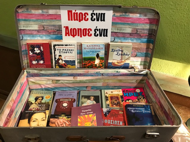 Εκτός από  νόστιμο μπακαλιάρο για τους πελάτες   υπάρχουν και  βιβλία.  Σε  μια βαλίτσα στην είσοδο  μπορείτε να  αφήνετε το βιβλίο που διαβάσατε και να πάρετε ένα άλλο. Για  περισσότερες  πληροφορίες  επικοινωνείτε στο τηλέφωνο  23510 39491.