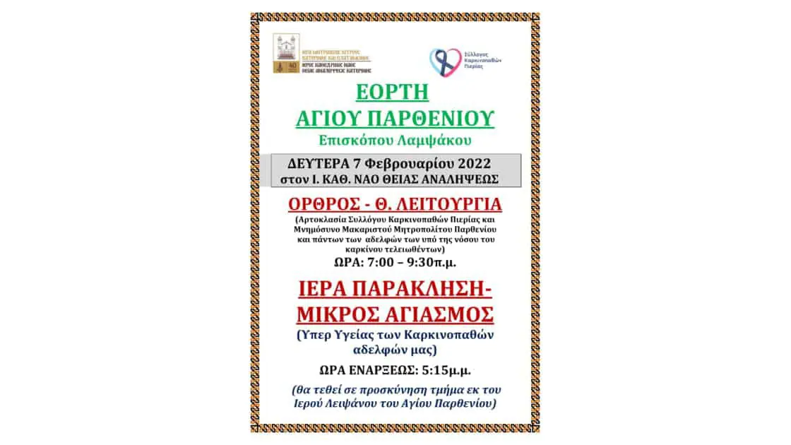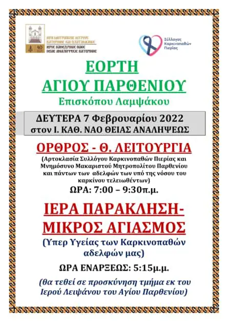 Εορτή Αγίου Παρθενίου, Επισκόπου Λαμψάκου,  στον Ιερό Καθεδρικό Ναό Θείας Αναλήψεως Κατερίνης