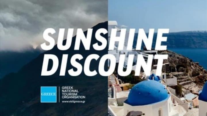 Για 4η συνεχόμενη χρονιά ο ΕΟΤ και η AEGEAN ενώνουν τις δυνάμεις τους για την τουριστική προβολή της χώρας στο εξωτερικό παρουσιάζοντας τη νέα διαφημιστική καμπάνια Sunshine Discount σε κοινή διαδικτυακή συνέντευξη Τύπου.  Επενδύοντας στο εξαιρετικό κλίμα της Ελλάδας και στις πλούσιες και διαφορετικές εμπειρίες που μπορεί να βιώσει ο επισκέπτης, με σύμμαχο τον καλό καιρό, ΕΟΤ και AEGEAN δημιούργησαν μια καμπάνια που έχει τη δυναμική να υποστηρίξει την προσπάθεια προσέλκυσης επισκεπτών όλο τον χρόνο.