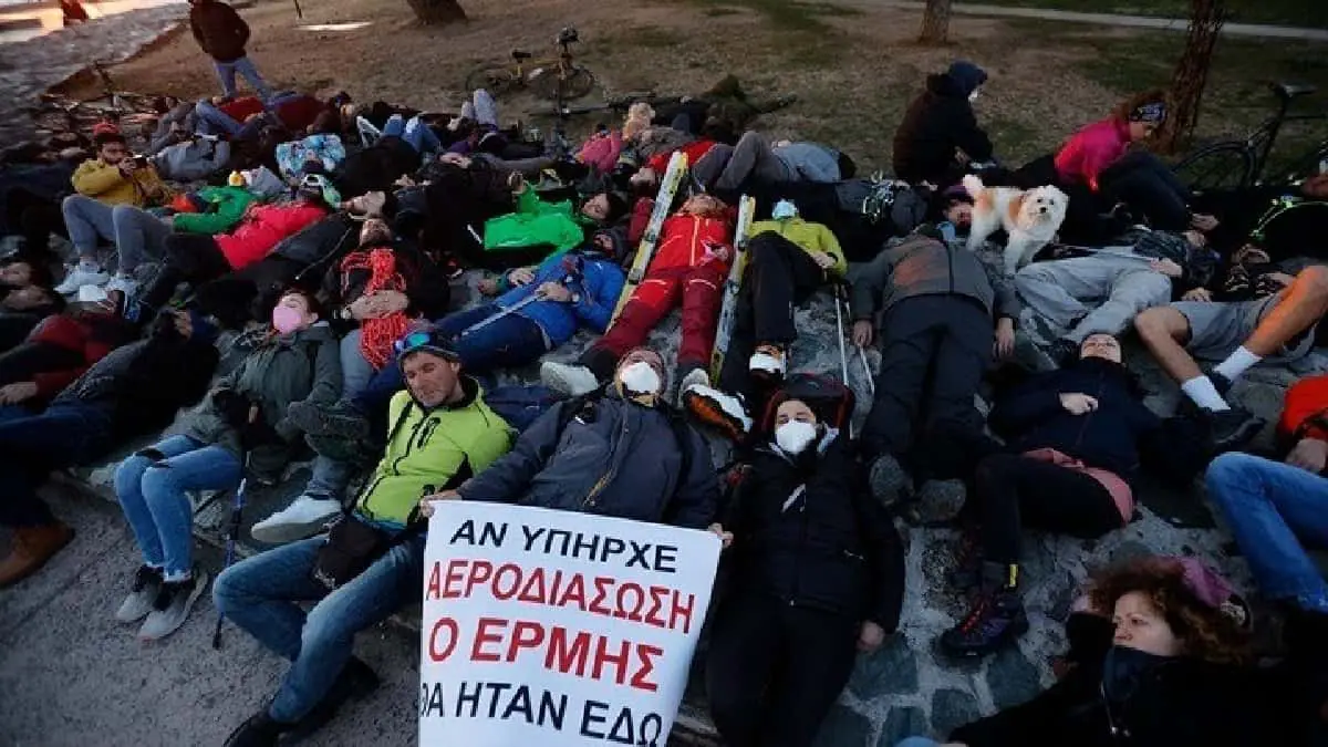 Οι συγκεντρωμένοι και οι συγκεντρωμένες κουβαλώντας τον ειδικό εξοπλισμό τους, όπως σκι, snowboards, μπατόν και πιολέ, σε ένδειξη διαμαρτυρίας ξάπλωσαν στην πλατεία Συντάγματος, αναπαριστώντας τους πολυτραυματίες θέλοντας, όπως είπαν, να στείλουν το δικό τους μήνυμα για μία «σοβαρή διαδικασία διάσωσης στα βουνά» με καταλληλότερα και εξειδικευμένα μέσα.