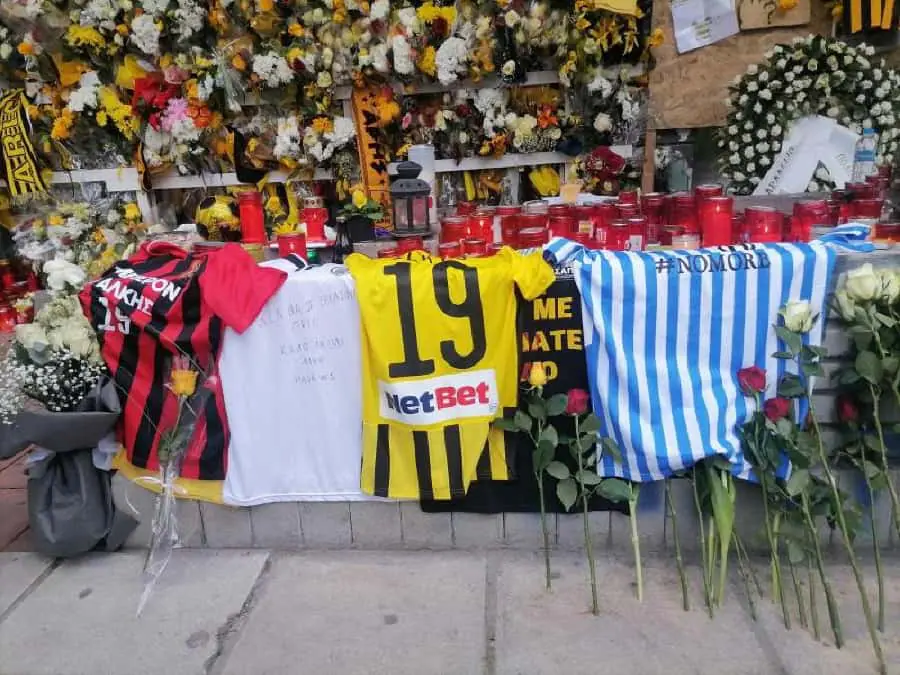 Μαζί με τον Γιώργο Μπαντή και κατόπιν πρωτοβουλίας του ΠΣΑΠ, η ποδοσφαιρική Θεσσαλονίκη βρέθηκε στο σημείο της δολοφονίας του Άλκη, θέλοντας να στείλουν από κοινού ένα ηχηρό μήνυμα. Βιεϊρίνια, Σιαμπάνης, Μανώλης και Άγγελος Παπαστεριανός καθώς ο Δημήτρης Αμαραντίδης, τίμησαν τη μνήμη του 19χρονου και φώναξαν «ποτέ ξανά».