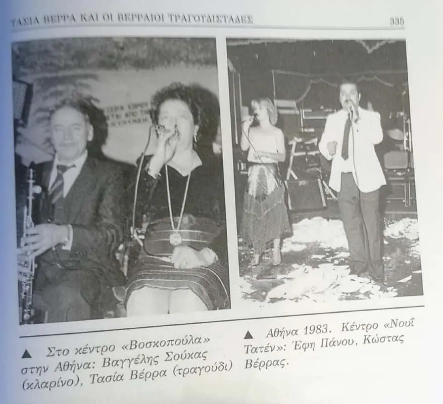 Η πρέσβειρα του δημοτικού τραγουδιού Τάσια Βέρρα και οι ξακουστοί Βερραίοι τραγουδιστάδες … του Άρη Μηλιώνη Ηχηρή μέσα στην ταπεινότητά της, η Τασία Βέρρα, έδωσε στις φωνητικές της χορδές το ρυθμό που ήξερε καλά να επεξεργάζεται ο πατέρας της με το κλαρίνο, δίνοντας του μια άλλη διάσταση.