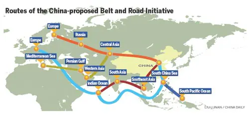 6ος Χάρτης: Οι βασικές διαδρομές του περίφημου κινέζικου ‘‘Δρόμου του Μεταξιού’’ (BRI).