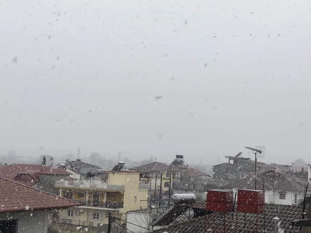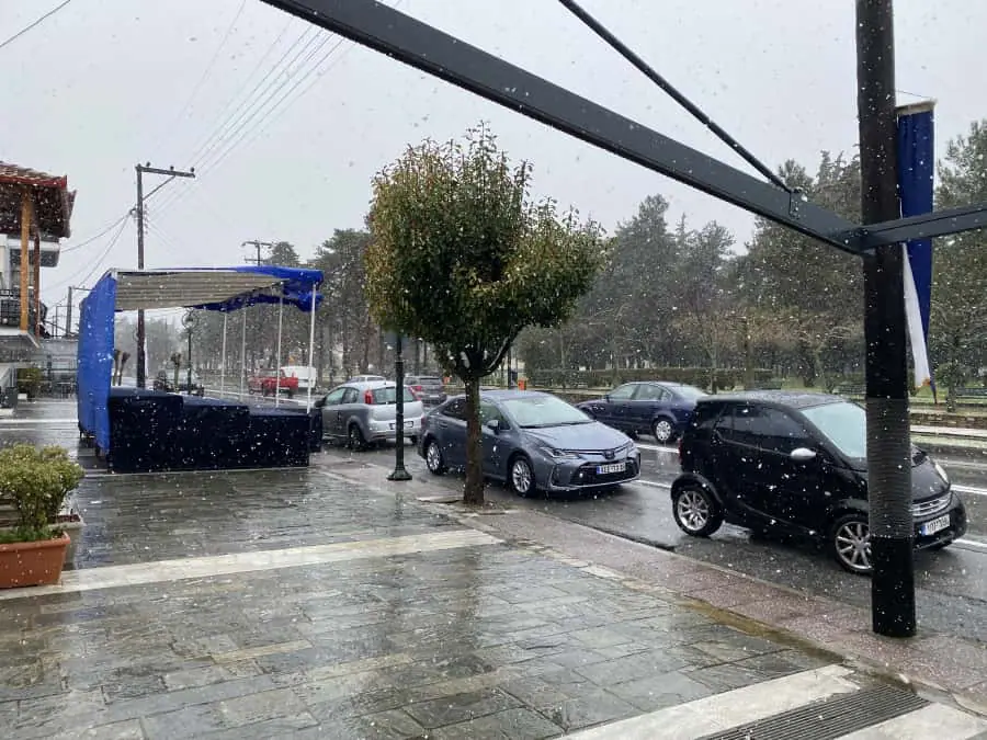 Στη Φλώρινα το χιόνι φτάνει τα πέντε εκατοστά και τη κίνηση των οχημάτων να γίνεται με τη χρήση χειμερινών ελαστικών ή αντιολισθητικών αλυσίδων, όπου είναι απαραίτητο.
