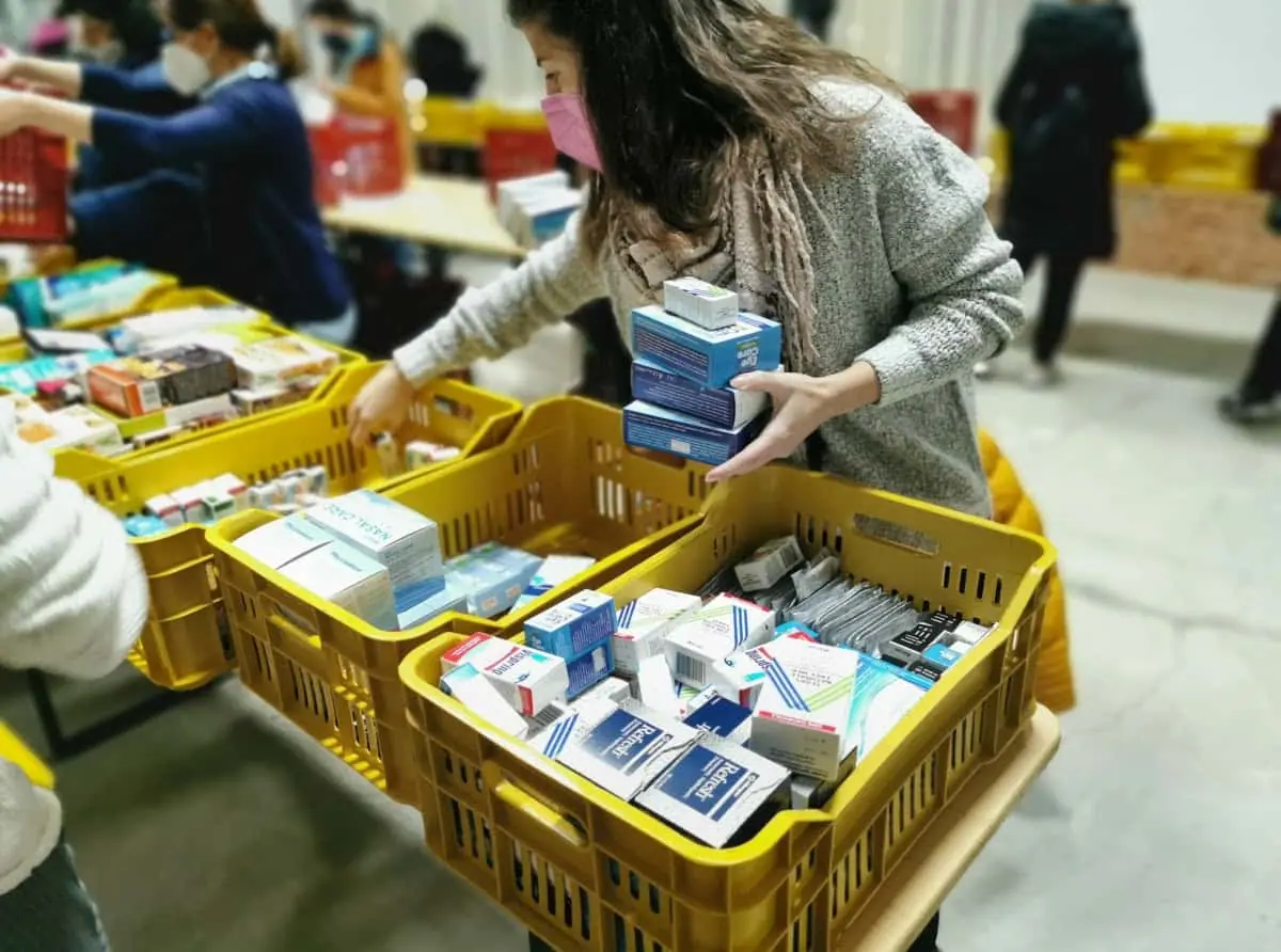Ταυτόχρονα, μια ομάδα περίπου 35 εθελοντριών και εθελοντών έλεγξε και ομαδοποίησε ιατροφαρμακευτικό υλικό για μια δεύτερη αποστολή ανθρωπιστικής βοήθειας στην Ουκρανία. Η πρώτη αποστολή φαρμάκων (2 παλέτες) πραγματοποιήθηκε στις 2 Μαρτίου.