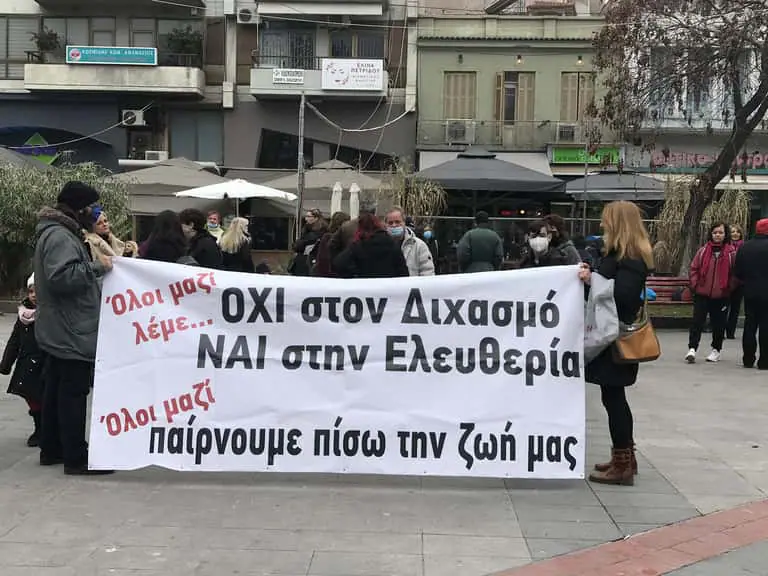Μικρός αριθμός αντιεμβολιαστών βρίσκεται αυτή τη στιγμή στην Πλατεία Ελευθερίας στην Κατερίνη.