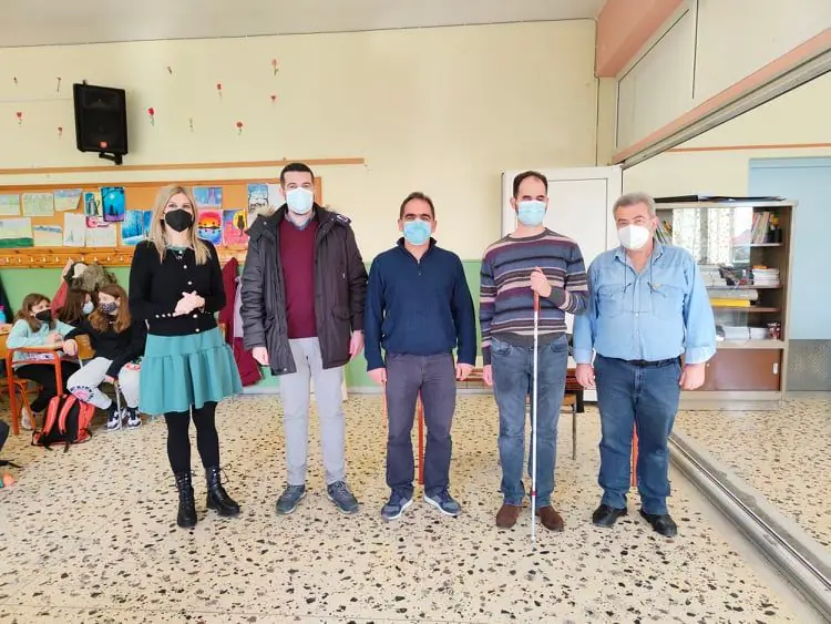 Πιο συγκεκριμένα,  με στόχο οι μαθητές και οι μαθήτριες να έρθουν βιωματικά σε επαφή με την καθημερινότητα ενός ανάπηρου ατόμου, ο τυφλός δικηγόρος και Πρόεδρος της ΑΜΚΕ* «Με Άλλα Μάτια», Βαγγέλης Αυγουλάς,  στο πλαίσιο του προγράμματος, βρέθηκε στην πόλη μας και μίλησε για την εξοικείωση με την αναπηρία. Ο κος Αυγουλάς, ο οποίος έχει γεννηθεί τυφλός, μίλησε για τη χρήση του λευκού μπαστουνιού, το σκύλο-οδηγό τυφλών, τη χρησιμότητα των νέων τεχνολογιών στη ζωή των τυφλών, την ανάγλυφη γραφή Braille και έδειξε τεχνικές συνοδείας τυφλού από βλέποντα οδηγό. Οι μαθητές και οι μαθήτριες ρώτησαν ελεύθερα ό,τι τους κίνησε την «περιέργεια» ή τους φάνηκε «διαφορετικό». Παράλληλα, από κοινού ανακάλυψαν τις έννοιες της προσβασιμότητας, της διαφορετικότητας και της συμπερίληψης.