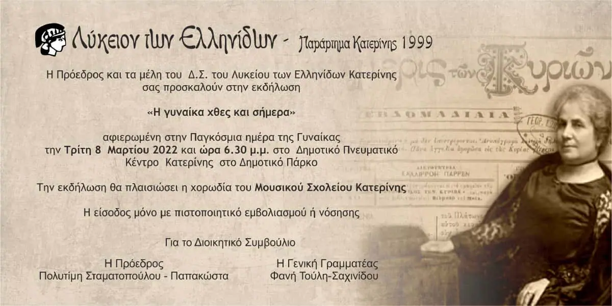 Λύκειο των Ελληνίδων Κατερίνης – Πρόσκληση  για την εκδήλωσή μας με αφιέρωμα στην γυναίκα στις 8 Μαρτίου.