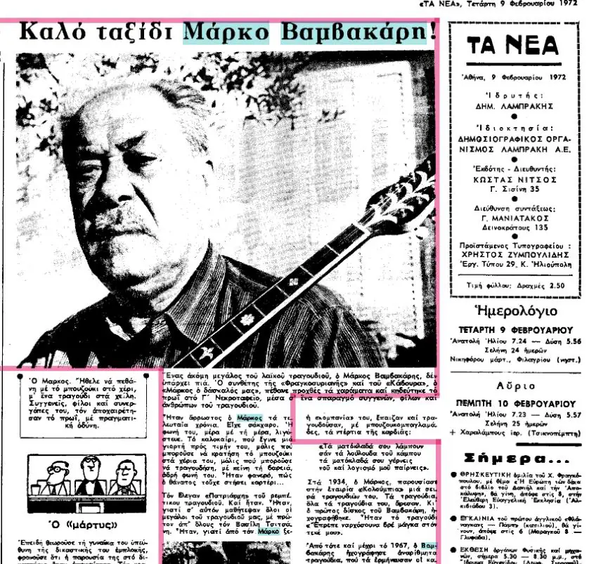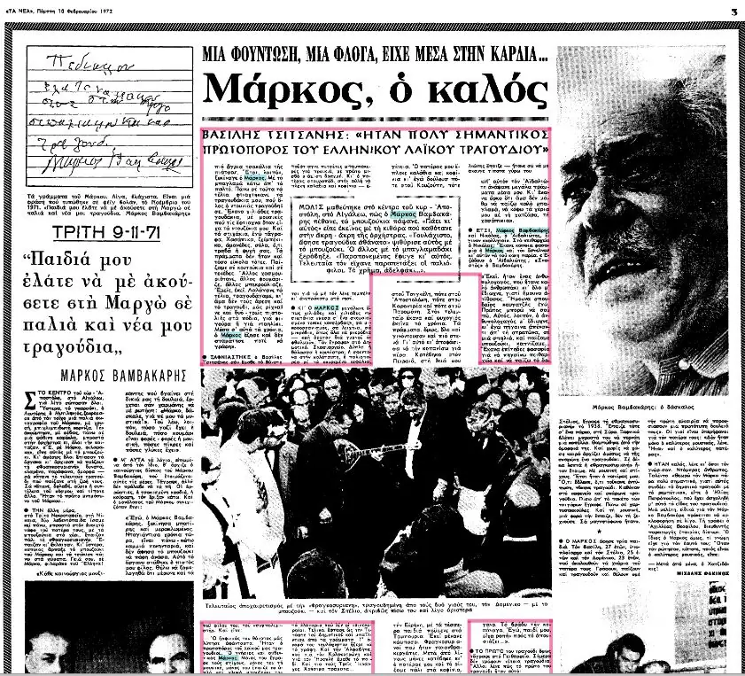 8 Φεβρουαρίου 1972. O Μάρκος Βαμβακάρης περνά στην ιστορία, αφήνοντας μια τεράστια παρακαταθήκη. Ένας κορυφαίος ρεμπέτης, ένας σπουδαίος μουσικός που μετά από δεκαετίες τα τραγούδια του είναι πασίγνωστα και τα τραγουδούν ακόμη και οι νέες γενιές.