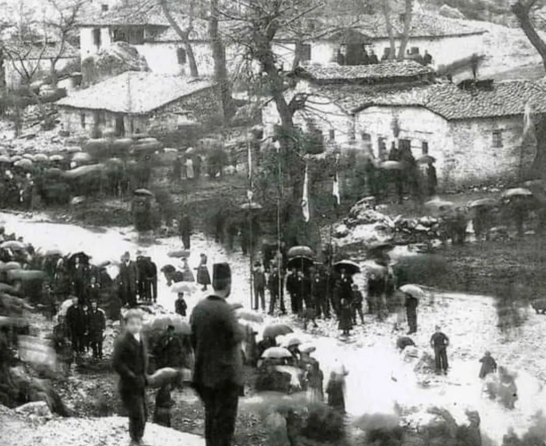 - Το οικισμό στο φαράγγι του Ενιππέα όπου σώζεται το σπίτι του καπετάν Λάππα (με χρονολογία φωτογραφίας 1895, Πανεπιστήμιο Κωνσταντινούπολης).