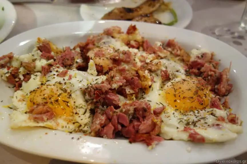 Ο καβουρμάς στο τηγάνι με αυγά είναι μια εξαιρετική πρόταση. Κι αν συνοδεύεται με ένα ποτηράκι μπρούσικο κρασί και επιδόρπιο χαλβά Αχιλλαδέλη Λήμνου, απογειώνει την γεύση!