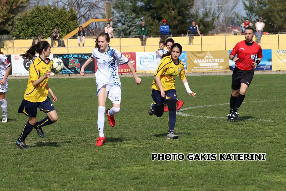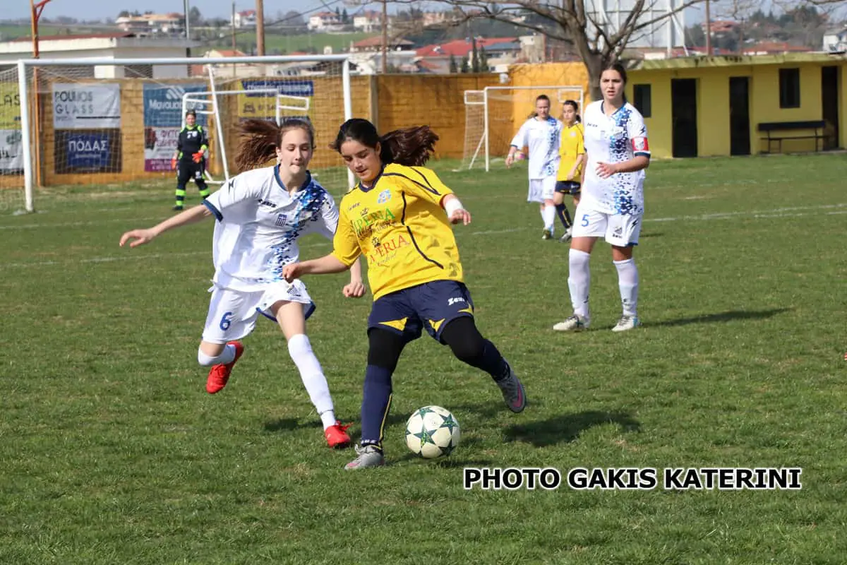 Για τις «Πιερίδες Μούσες», οι οποίες συνεχώς ανανεώνονται με νέα ταλέντα, αλλά «πατούν γερά» και το έμπειρο δυναμικό, το γήπεδο του Σβορώνου, η φυσική τους έδρα, αποδείχτηκε γούρικο. Αφού κατάφεραν να φέρουν το ρυθμό του παιχνιδιού στα «μέτρα τους» και μετά από ένα 1ο ημίχρονο με καλές ευκαιρίες κατάφεραν στην έναρξη του 2ου ημιχρόνου να προηγηθούν. Η Παναγιώτα Γκούτζα με κοντινή κεφαλιά στο 48′ έστειλε τη μπάλα στα δίχτυα της αντίπαλης ομάδας κάνοντας το 1-0 που ήταν και το τελικό αποτέλεσμα του αγώνα.