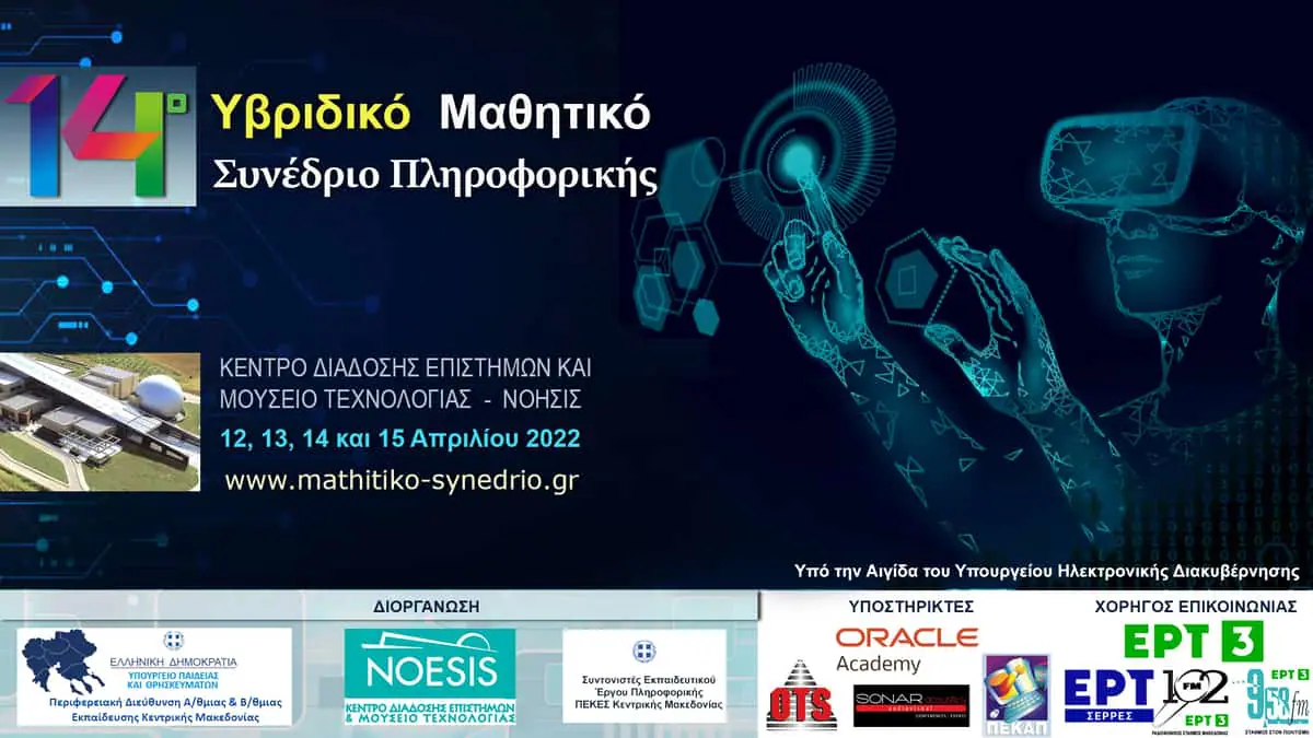 Το Μαθητικό Συνέδριο διεξάγεται με την ευθύνη της Περιφερειακής Διεύθυνσης Α/θμιας & Β/θμιας Εκπαίδευσης Κεντρικής Μακεδονίας, του Ιδρύματος ΝΟΗΣΙΣ-Κέντρο Διάδοσης Επιστημών και Μουσείου Τεχνολογίας και των συντονιστών Εκπαιδευτικού Έργου του κλάδου Πληροφορικής, από τις 12 έως και τις 15 Απριλίου.