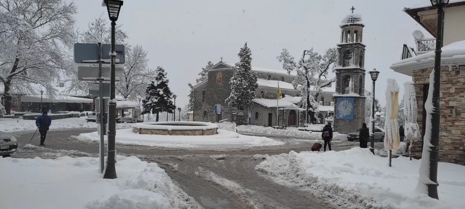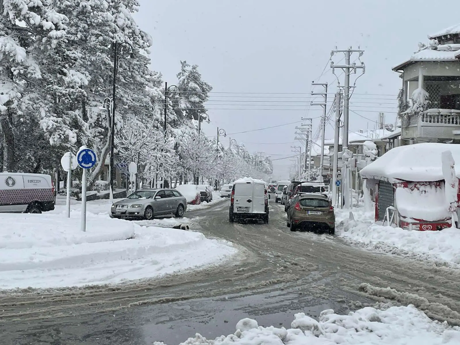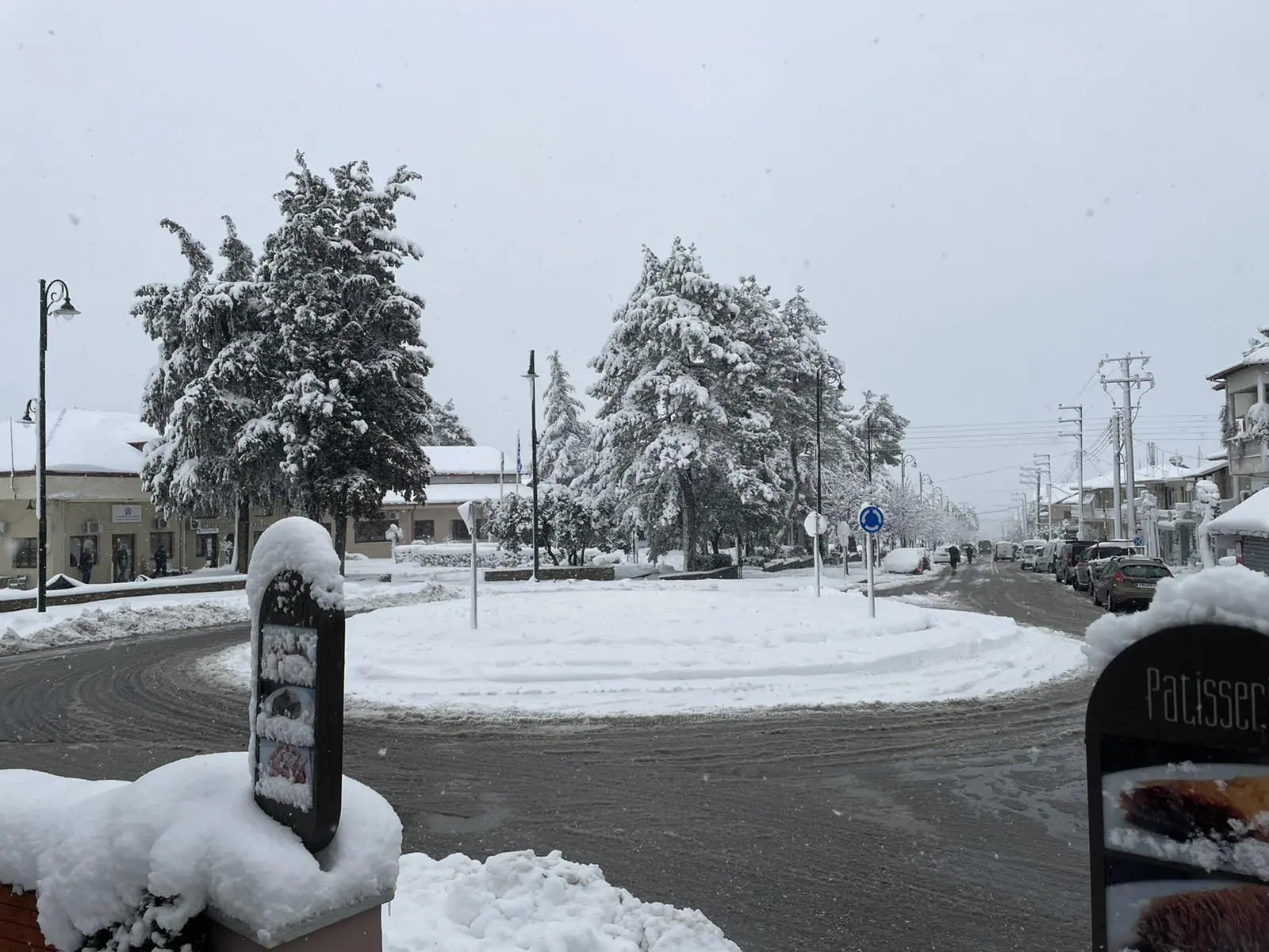 Το βάρος του χιονιού προκάλεσε πτώση καλωδίων της ΔΕΗ και διακοπή της ηλεκτροδότησης.