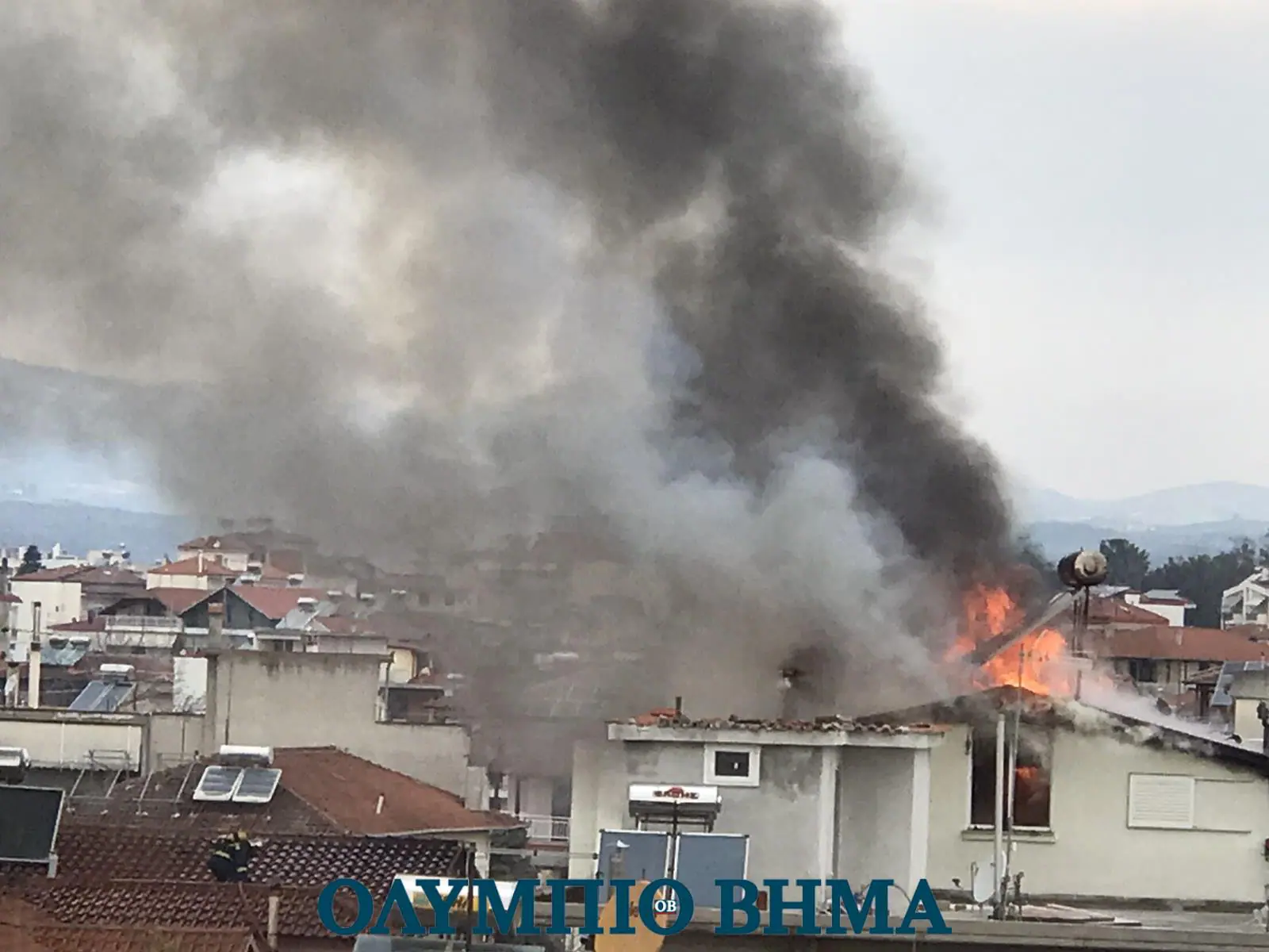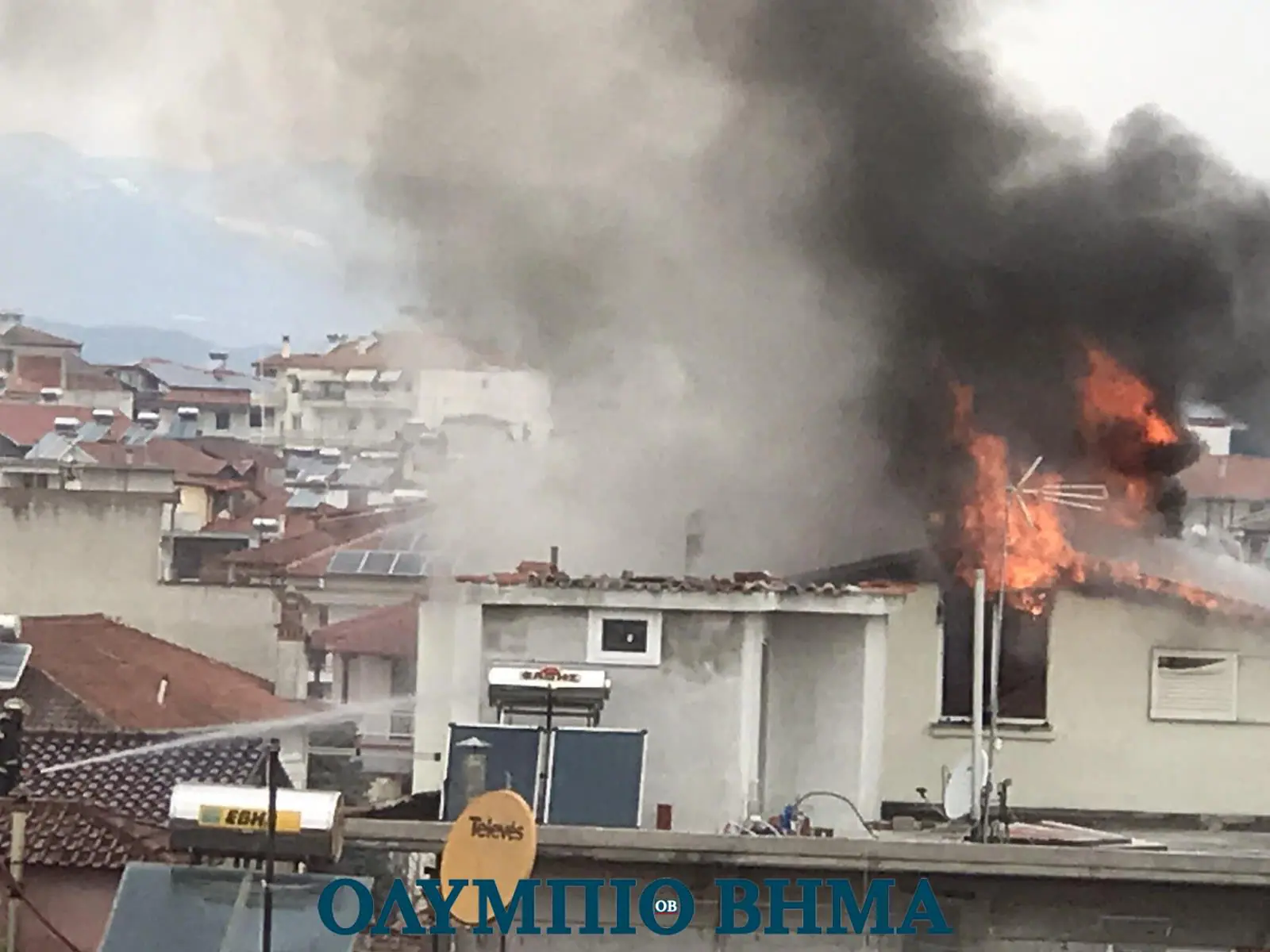 Πυρκαγιά σε τριώροφη κατοικία στη συμβολή των οδών Αγίου Δημητρίου και Πυθαγόρα στην Κατερίνη ξέσπασε το πρωί του Σαββάτου.