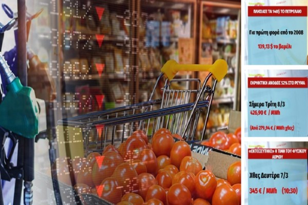 Το κύμα ακρίβειας που είχε κάνει την εμφάνισή του από το φθινόπωρο πλέον φαίνεται να βρίσκεται εκτός ελέγχου μετά το ξέσπασμα του πολέμου. Βασικά αγαθά όπως τα καύσιμα και η ηλεκτρική ενέργεια έχουν επιδοθεί σε ένα ράλι τιμών το οποίο προκαλεί ηλεκτροσόκ στην αγορά. Οι ειδήσεις από το σχετικό οικονομικό δελτίο τις τελευταίες μέρες μονότονα καταγράφουν το ένα «ιστορικό ρεκόρ» να διαδέχεται το άλλο.
