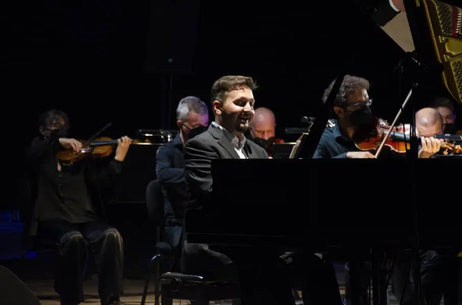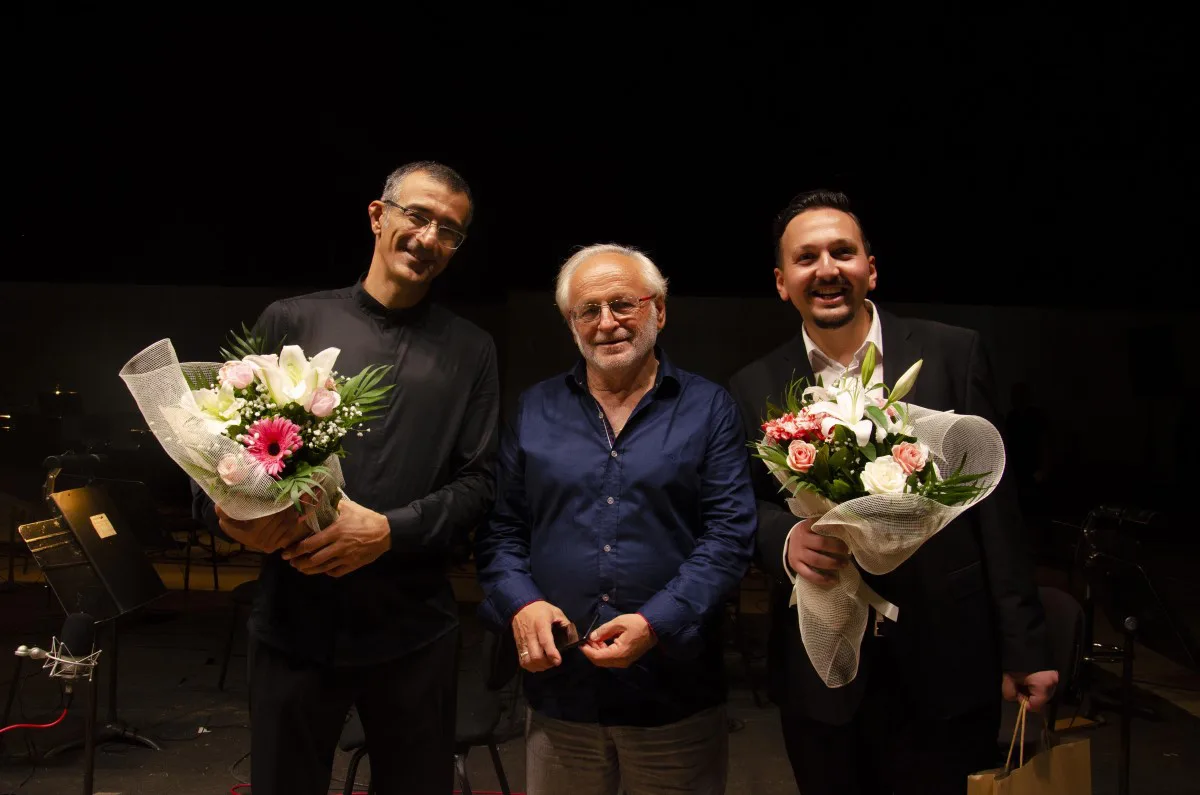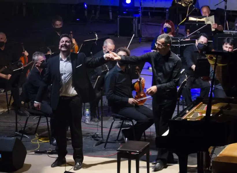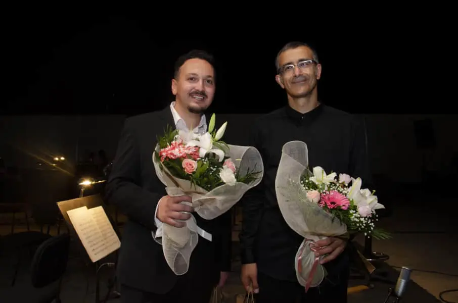 Ο αρχιμουσικός και διευθυντής ορχήστρας, Βλαδίμηρος Συμεωνίδης και ο σολίστας στο πιάνο, Πάρις Τσενίκογλου