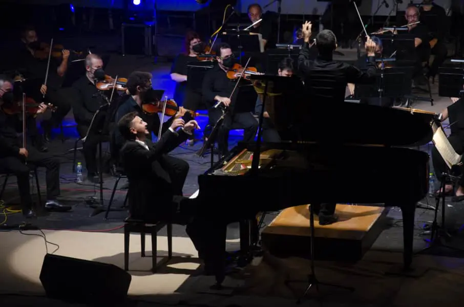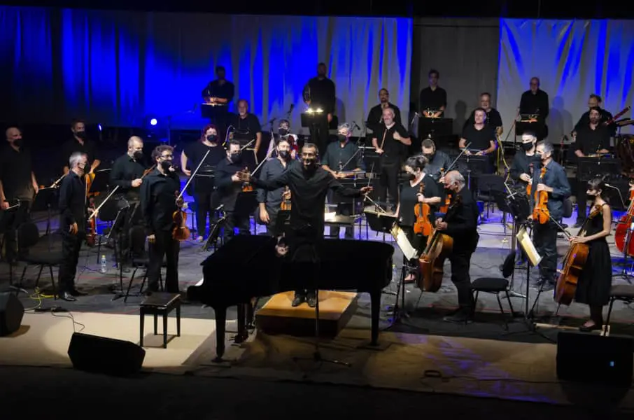 Ο αρχιμουσικός και διευθυντής ορχήστρας, Βλαδίμηρος Συμεωνίδης και ο σολίστας στο πιάνο, Πάρις Τσενίκογλου, μαζί με τους μουσικούς της Κρατικής Ορχήστρας Θεσσαλονίκης, μαγεύουν και εκστασιάζουν το κοινό, γοητεύουν τους Ολύμπιους Θεούς, συναρπάζουν τον μύστη της τραγουδιστικής τέχνης, τον κιθαρωδό Ορφέα.