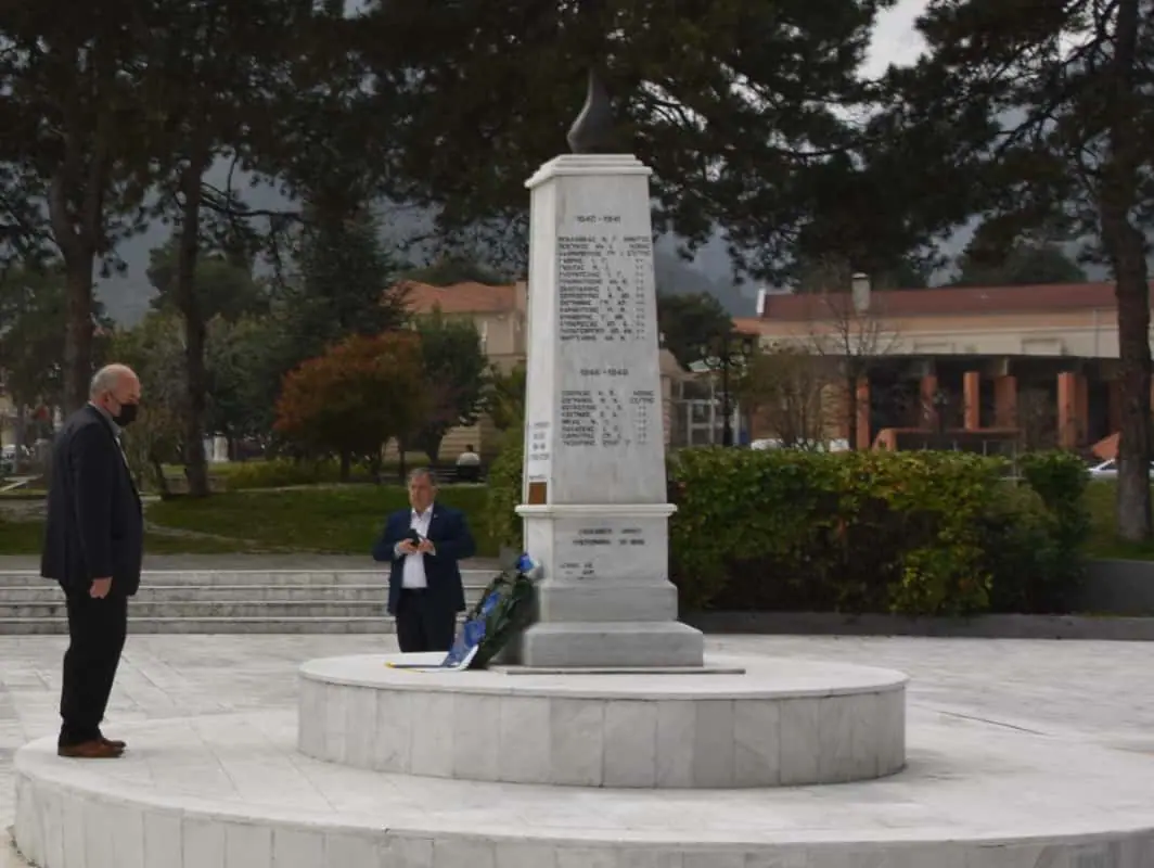Συνεχίζοντας τις δηλώσεις του ο κ. Αδαμόπουλος ανέφερε: «Δώδεκα χωροφύλακες και στρατιώτες, καθώς και η Εθνομάρτυρας Ευαγγελία (Μπουλιώ) Λαλουμίχου, έδωσαν τη ζωή τους υπέρ πίστεως και υπέρ πατρίδος, για να μείνουμε εμείς ελεύθεροι. Οι αντάρτες ζήτησαν από τους υπερασπιστές τής Δημοκρατίας και της Πατρίδος να παραδοθούν, αλλά εκείνοι αρνήθηκαν, έδωσαν πολύωρη μάχη και έπεσαν χωρίς να προδώσουν τα ιδανικά μας.