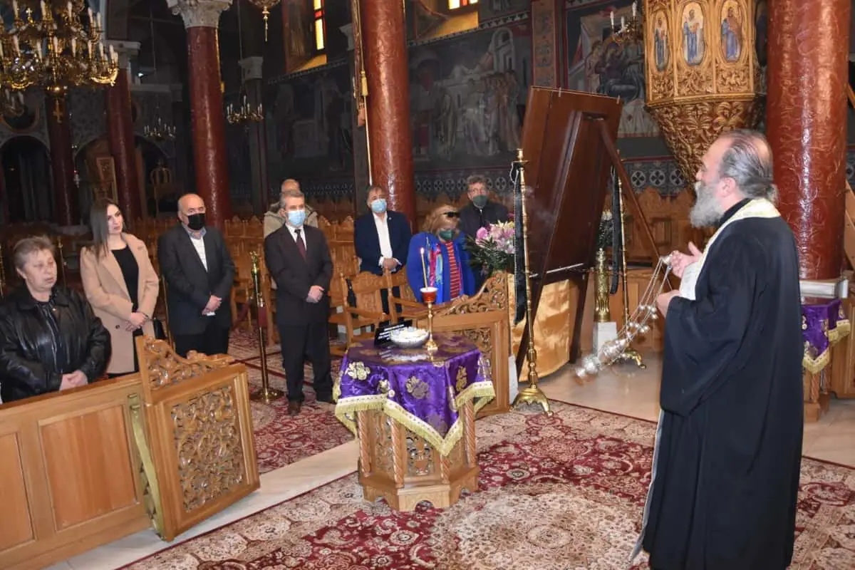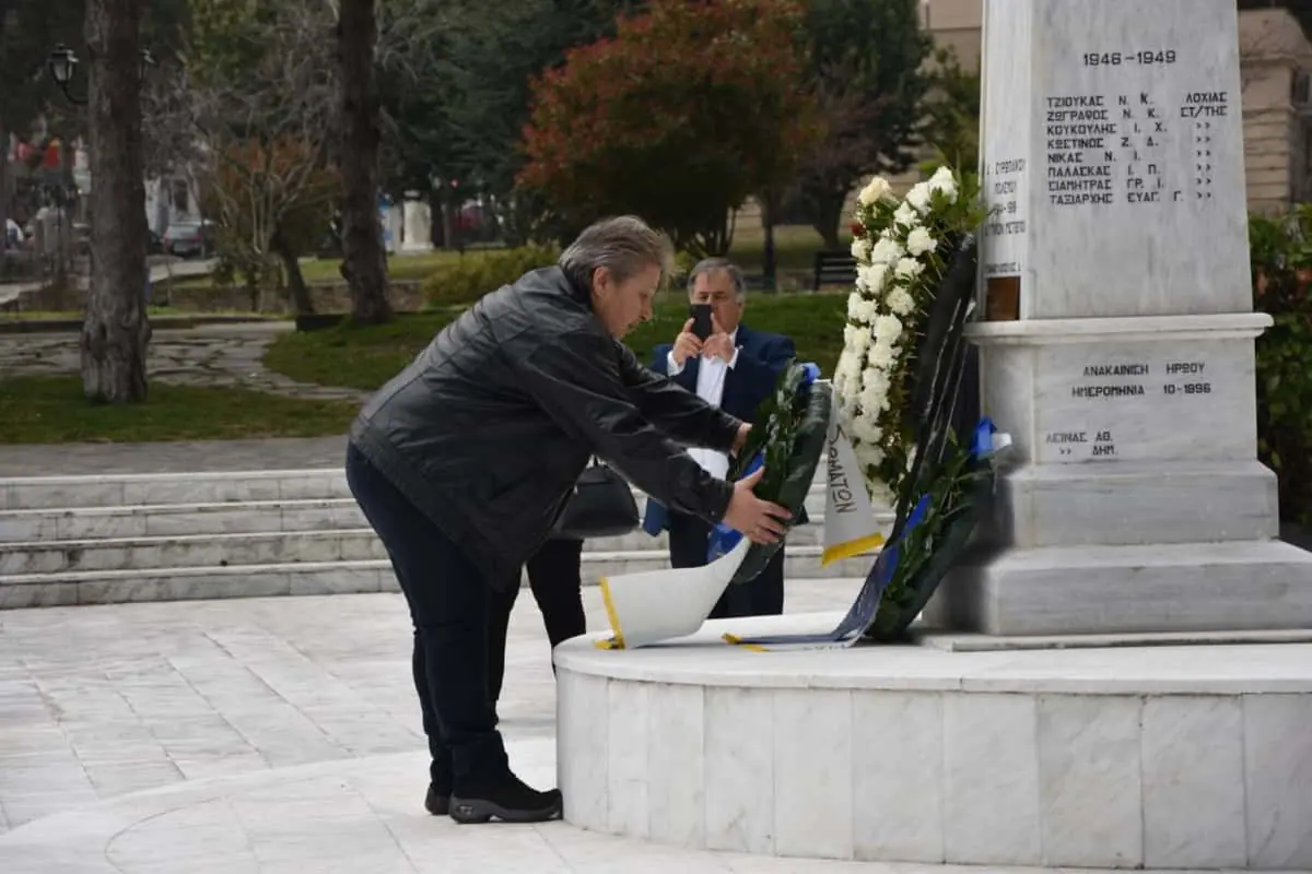 Ελένη Γκουνού – Κουκάρα, εγγονή τού πεσόντος Λοχία Νικόλαου Γκουνού, και κατέθεσε στεφάνι.