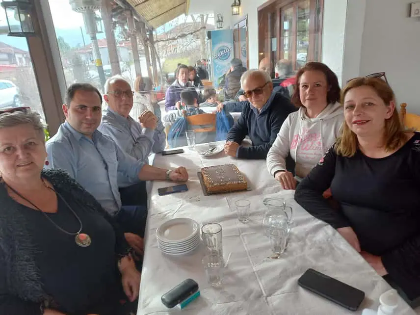 Ολοκληρώνοντας την περιοδεία τα μέλη της αντιπροσωπείας κατέλυσαν σε ταβέρνα του Δίου, όπου έκοψαν και την πρωτοχρονιάτικη πίττα του ΟΡΦΕΟ.