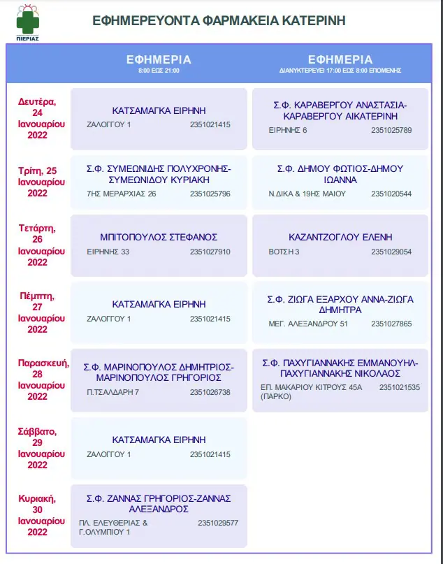 • Εφημερεύοντα Φαρμακεία Κατερίνης