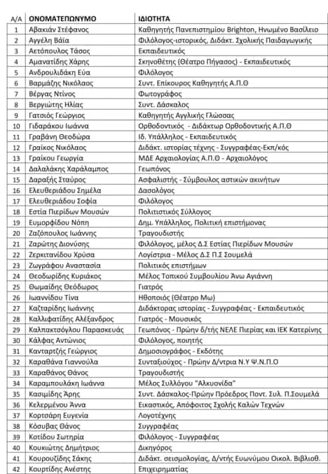 Την πρόταση συνυπογράφουν οι παρακάτω πολίτες της πόλης: