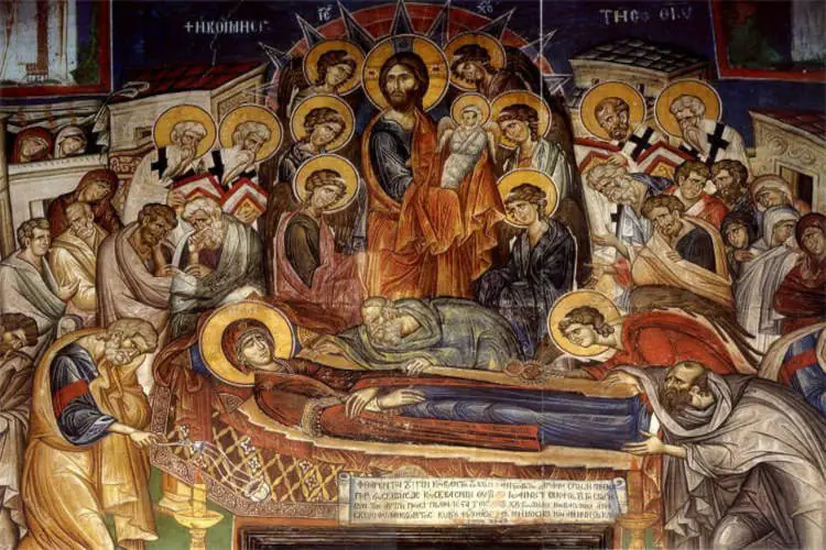Τιμάται η κοίμηση της Θεοτόκου. Είναι η ημέρα κατά την οποία η Υπεραγία Θεοτόκος κλείνει τον επί της γης κύκλο της ζωής. Περνά από τα γήινα με τις θλίψεις και τις δυσκολίες στην άφατο αιώνια ζωή και αγαλλίαση. Επιτέλεσε με άριστο τρόπο την επί της γης αποστολή Της. «Χαίρε, κλίμαξ επουράνιε δι ης κατέβη ο Θεός∙ χαίρε, γέφυρα μετάγουσα τους εκ γης προς ουρανόν» ψάλλομε στον ακάθιστο ύμνο. Έγινε η νέα Εύα που γέννησε τον Λόγο του Θεού και λυτρωτή του κόσμου. Κύησε επί εννεάμηνο τον Σωτήρα Χριστό. Δάνεισε τα πάναγνα αίματά Της για να σαρκωθεί ο δημιουργός του κόσμου και του ανθρώπου. Με το γάλα της έθρεψε και μεγάλωσε τον Θεάνθρωπο Κύριο. Τον σωματικό θάνατο της Θεομήτορος εορτάζομε τον 15αύγουστο, την κοίμησή Της, δηλαδή το πέρασμα από την πρόσκαιρη ζωή εις την αιώνιο Ζωή. Για αυτό οι πιστοί χριστιανοί την ημέρα αυτή με χαρά πανηγυρίζουν.