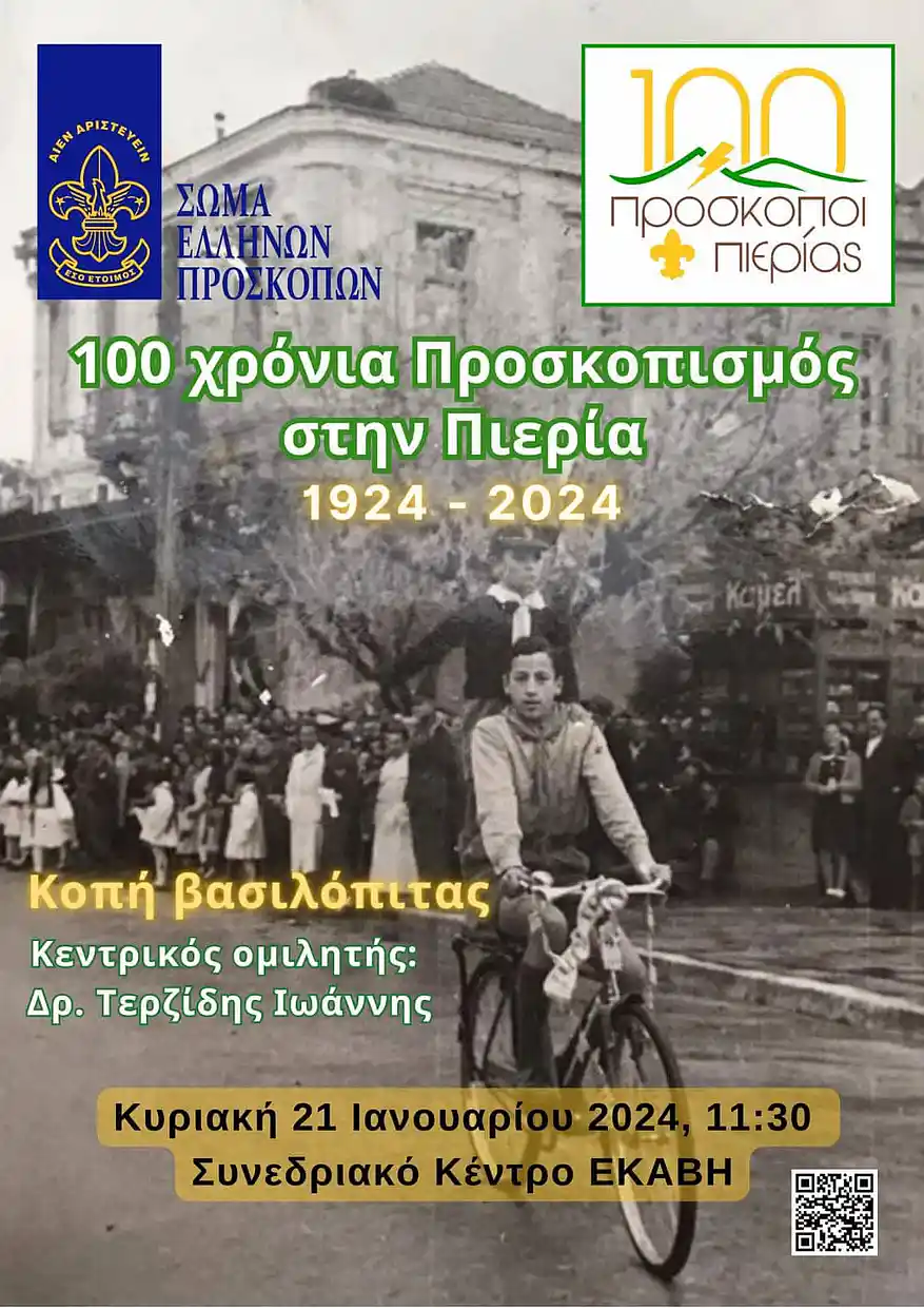 Ολύμπιο Βήμα » Επικαιρότητα » Δελτία Τύπου » 1924 – 2024: 100 χρόνια Προσκοπισμός στην Πιερία!