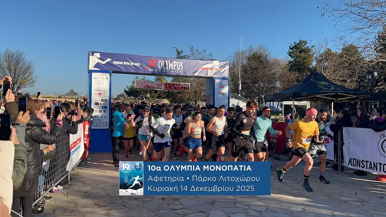 Με σύμμαχο τον αίθριο καιρό δόθηκε στο πάρκο Λιτοχώρου το σήμα εκκίνησης των αγώνων δρόμου ορεινού τρεξίματος “19ος Χειμωνιάτικος Ενιπέας” και “10α Ολύμπια Μονοπάτια”, με τη συμμετοχή 1.100 αθλητών.
