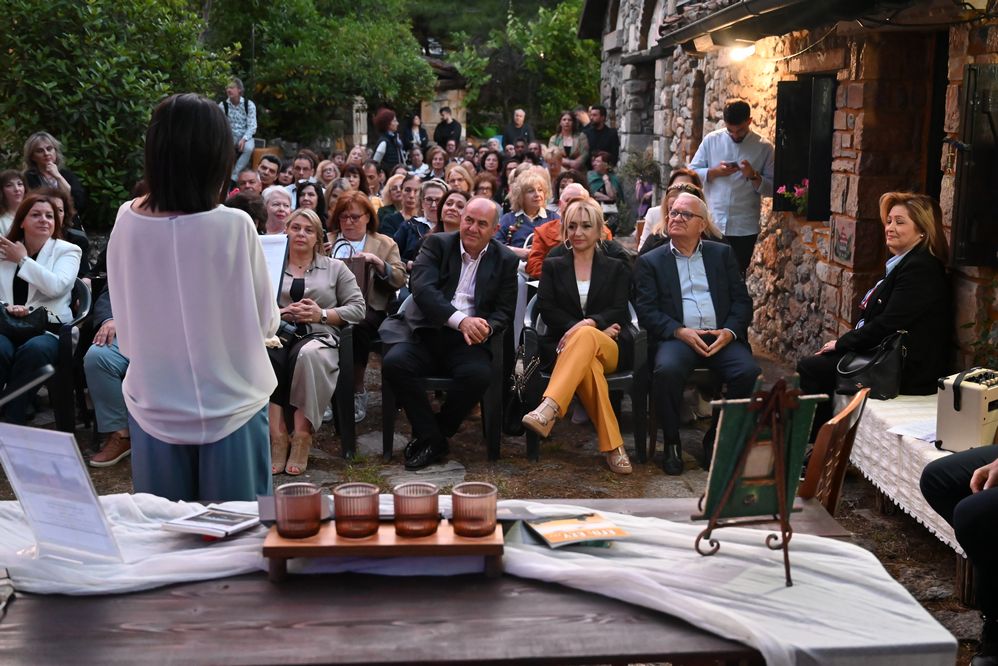 «Ευρωπαϊκή Νύχτα Λογοτεχνίας στον μυθικό Όλυμπο και η λογοτεχνία ως καταφύγιο στη ζωή μας», ήταν το θέμα της ομιλίας της κ. Ουρανίας Κατσαμάκα, φιλολόγου, ειδικής συμβούλου Πολιτισμού στον δήμο Δίου-Ολύμπου. Η κ. Κατσαμάκα με αναφορές -παραπομπές στον Καρυωτάκη και στον Καβάφη, στον Σοφοκλή και στον Ντοστογιέφσκι τόνισε ότι «για τη λογοτεχνία δεν μιλάς, δεν τη σχολιάζεις, δεν τη διεκπεραιώνεις λεκτικά. Τη ζεις, την αισθάνεσαι, βουτάς μέσα στα βάθη της, ασφυκτιάς, ξεπετάγεσαι στα ύψη της, αναπνέεις και νιώθεις ζωντανός…». Στη συνέχεια η κ. Κατσαμάκα αναφέρθηκε στην πορεία του Θεοχάρη Μπικηρόπουλου υπογραμμίζοντας ότι “με την παρουσία μας εδώ, αναγνωρίζουμε και τιμούμε την προσφορά του στα γράμματα και στην πνευματική ζωή του τόπου μας. Η λογοτεχνία και ο πολιτισμός είναι δύο όψεις του ίδιου νομίσματος, αλληλένδετες και συμπληρωματικές. Η λογοτεχνική παραγωγή εντάσσεται στον πολιτισμό ενός λαού, μιας περιοχής, ενός έθνους. Από την άλλη, ο πολιτισμός, ως το σύνολο των αξιών, των παραδόσεων και των εκφράσεων μιας κοινωνίας, βρίσκει στη λογοτεχνία έναν ισχυρό φορέα διατήρησης και μετάδοσής του. Η λογοτεχνία δεν είναι μόνο απόρροια, ένα κομμάτι του πολιτισμού, αλλά και δημιουργός του. Είναι η φωνή που διασώζει την ιστορία, προκαλεί την αλλαγή και ενώνει τους ανθρώπους πέρα από γεωγραφικά και χρονικά όρια”.