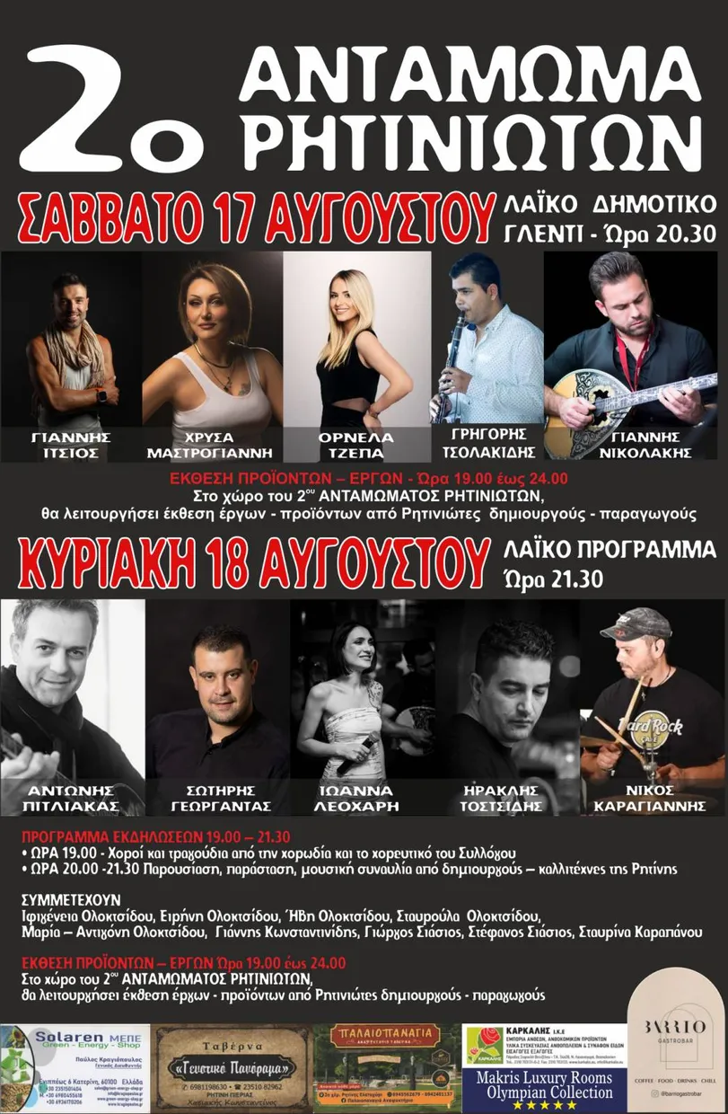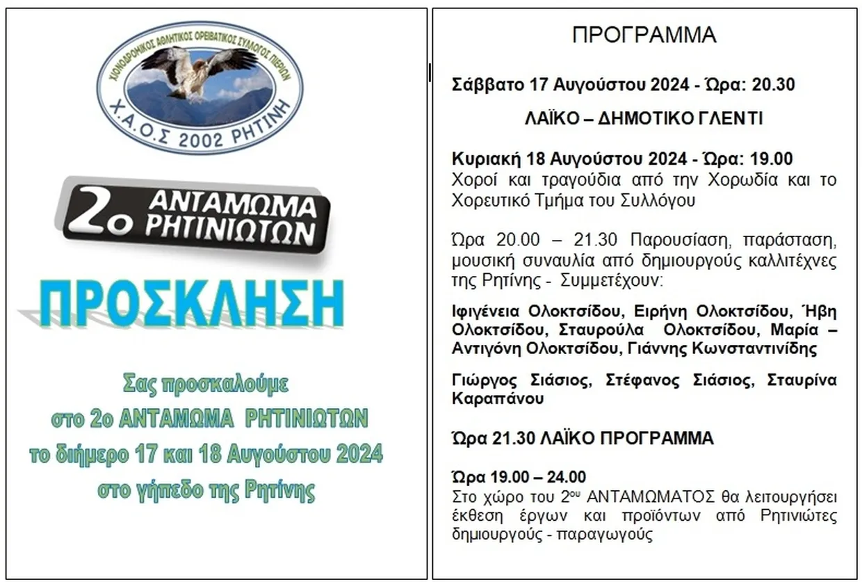 2ο Αντάμωμα Ρητινιωτών Σάββατο 17 & Κυριακή 18 Αυγούστου