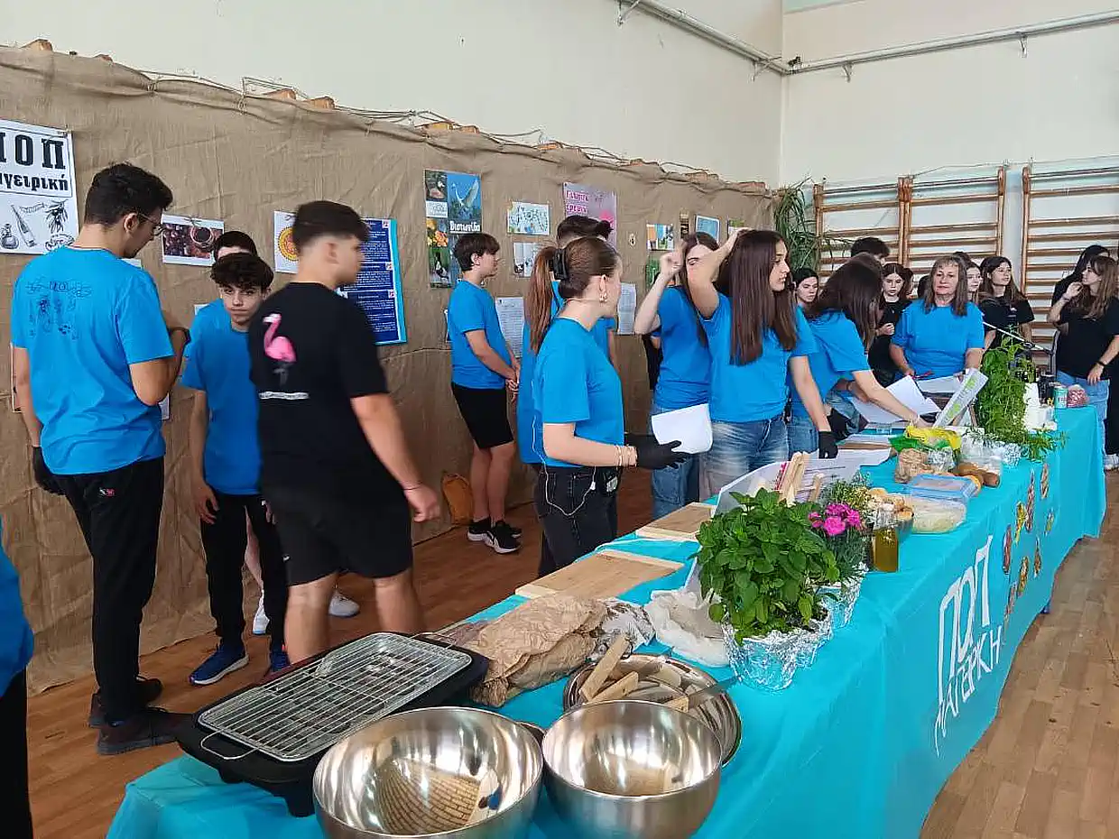 Κατά την παρουσίαση των προϊόντων ΠΟΠ στον χώρο του Σχολείου στις 24/05/2024, οι μαθητές έκαναν αναπαράσταση της εκπομπής του Σεφ Ανδρέα Λαγού με τον οποίο όταν τελείωσε η εκδήλωση επικοινώνησαν live μέσω του διαδικτύου.