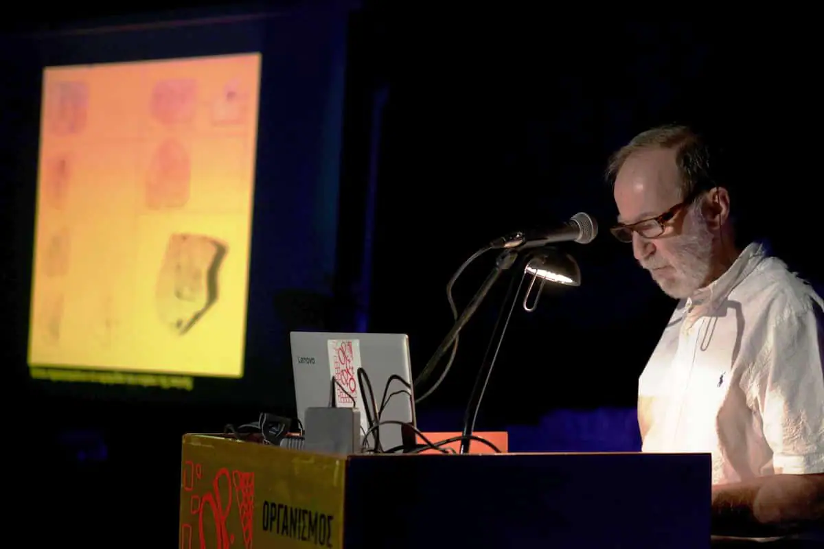 Ο αρχιτέκτονας, αρχαιολόγος και αναστηλωτής, καθηγητής κ. Καραδέδος, ο οποίος έχει συνδέσει το όνομα του με τις ανασκαφές στον αρχαιολογικό χώρο του Δίου, στην ομιλία του με τίτλο «Χώροι θεαμάτων στο αρχαίο Δίον. Θέατρα, Στάδιο, Ωδείο», αναφέρθηκε στην ιστορία της περιοχής, τις ανασκαφές και τα μοναδικά ευρήματα που έφερε στο φως η αρχαιολογική σκαπάνη, αποκαλύπτοντας έναν σπάνιο πολιτιστικό θησαυρό της Ελλάδας και του Δίον, της ιερής πόλης των Μακεδόνων. Από τον βασιλιά της Μακεδονίας Αρχέλαο που καθιέρωσε τα εν Δίω Ολύμπια, τους ολυμπιακούς αγώνες του Δίου αφιερωμένους στο Δία και στις Εννέα Μούσες, πήγαμε στο αρχαιότερο θέατρο των κλασσικών χρόνων, εκεί που ο Ευριπίδης πέρασε τα τελευταία χρόνια της ζωής του και παρουσίασε για πρώτη φορά στα τέλη του 5ου αιώνα τις τραγωδίες του «Αρχέλαος» και «Βάκχες» μέχρι το Ρωμαϊκό Ωδείο, μια στεγασμένη θεατρική αίθουσα πολλαπλών χρήσεων για 400 περίπου θεατές, το οποίο κτίστηκε στα τέλη του 2ου μ.Χ. αιώνα.