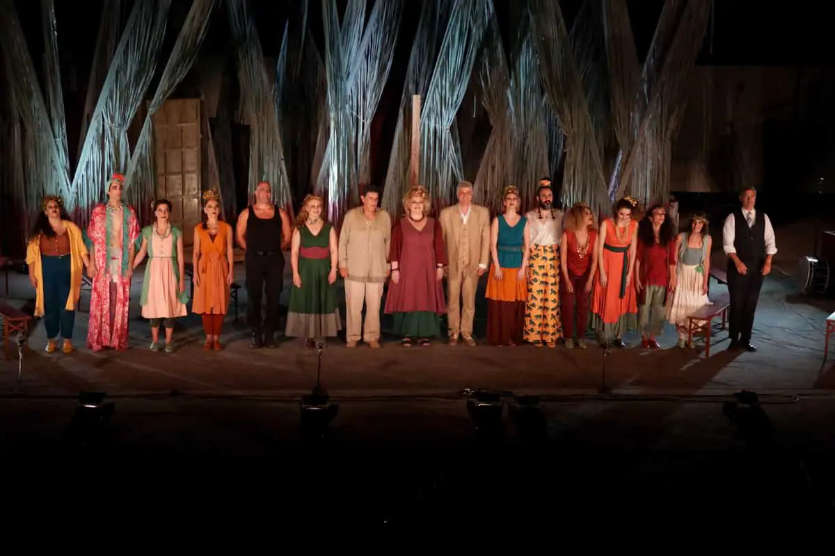 Ενθουσιώδη υποδοχή επεφύλαξαν την Κυριακή το βράδυ οι θεατές στις Θεσμοφοριάζουσες του Αριστοφάνη, σε σκηνοθεσία Γιάννη Μπέζου. Ο δημοφικής ηθοποιός, σκηνοθετεί και πρωταγωνιστεί στην παράσταση, με τον Βλαδίμηρο Κυριακίδη και την Φωτεινή Μπαξεβάνη στους πρωταγωνιστικούς ρόλους και ένα εξαιρετικό καστ ηθοποιών.