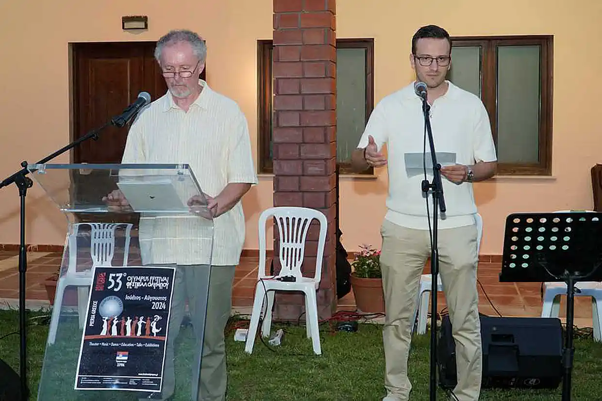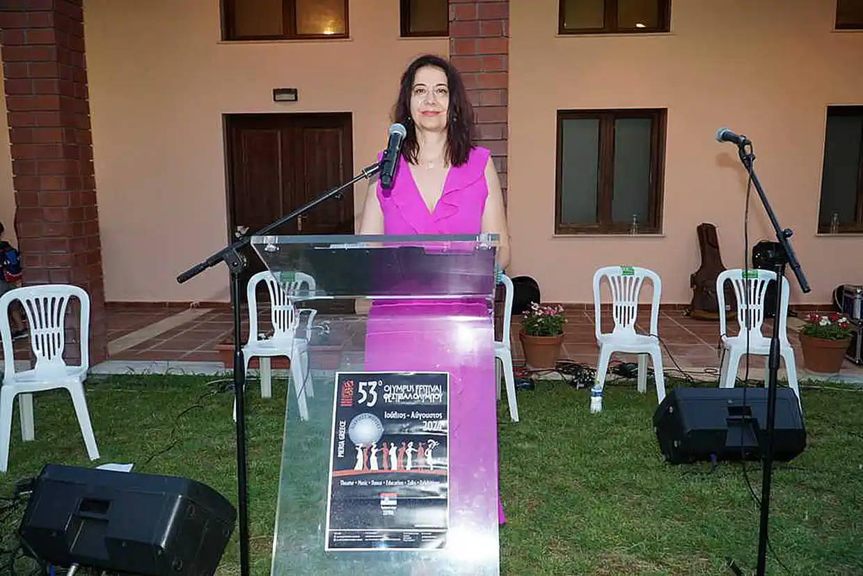 Η βραδιά των εγκαινίων την οποία παρουσίασε το διοικητικό μέλος του Οργανισμού Φεστιβάλ Ολύμπου, Μελίνα Ππαδοπούλου, πλαισιώθηκε με μουσική συναυλία, από την Ορχήστρα Νέων του Κέντρου Γραμμάτων και Τεχνών Δίου, σε διεύθυνση του μαέστρου, Νίκου Πατρή.