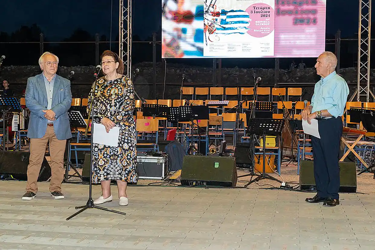 Το βραδινό της Τετάρτης 3 Ιουλίου 2024, παρουσία της υπουργού Πολιτισμού, Λίνας Μενδώνη, η οποία εγκαινίασε το ανακαινισμένο Αρχαίο Θέατρο Δίου και τους χώρους υποδοχής του αρχαιολογικού πάρκου της ιερής πόλης των αρχαίων Μακεδόνων, ο πενήντα και τριών χρόνων σημαντικός θεσμός της Πιερίας, το Φεστιβάλ Ολύμπου, ξεκίνησε τις φετινές του διαδρομές στα μονοπάτια των καλλιτεχνικών δημιουργιών.