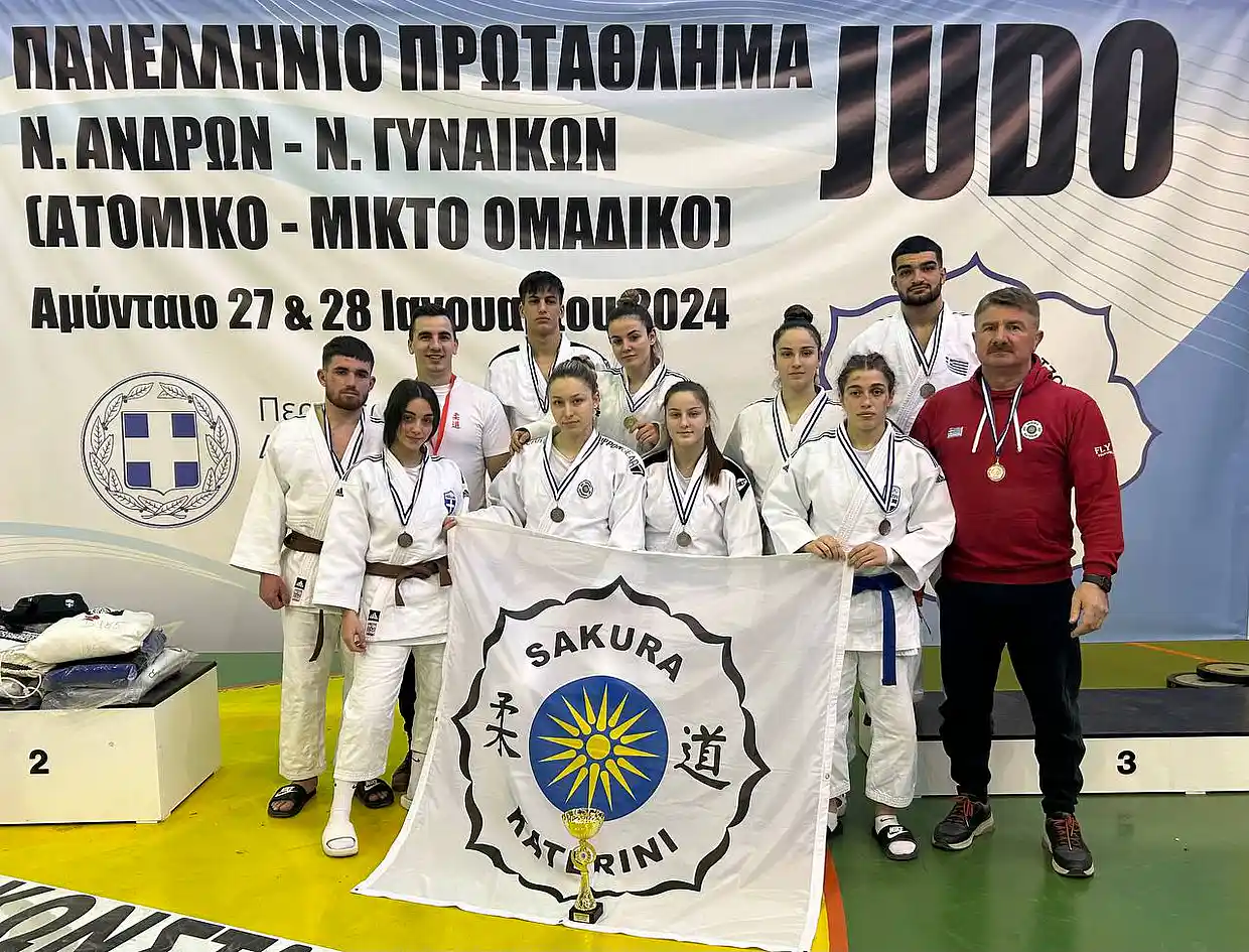 Εντυπωσιακή εμφάνιση πραγματοποίησε η ομάδα του Α.Σ. Sakura Κατερίνης στο Πανελλήνιο Πρωτάθλημα Τζούντο Νέων Ανδρών και Νέων Γυναικών 2024, που διεξήχθη στο Αμύνταιο. Οι αθλητές και αθλήτριες του Sakura κατέκτησαν συνολικά 4 μετάλλια στα ατομικά, σε ένα πρωτάθλημα με συμμετοχή 162 αθλητών και αθλητριών από 42 σωματεία, ενώ κατέκτησαν τη δεύτερη θέση στο Μικτό Ομαδικό.