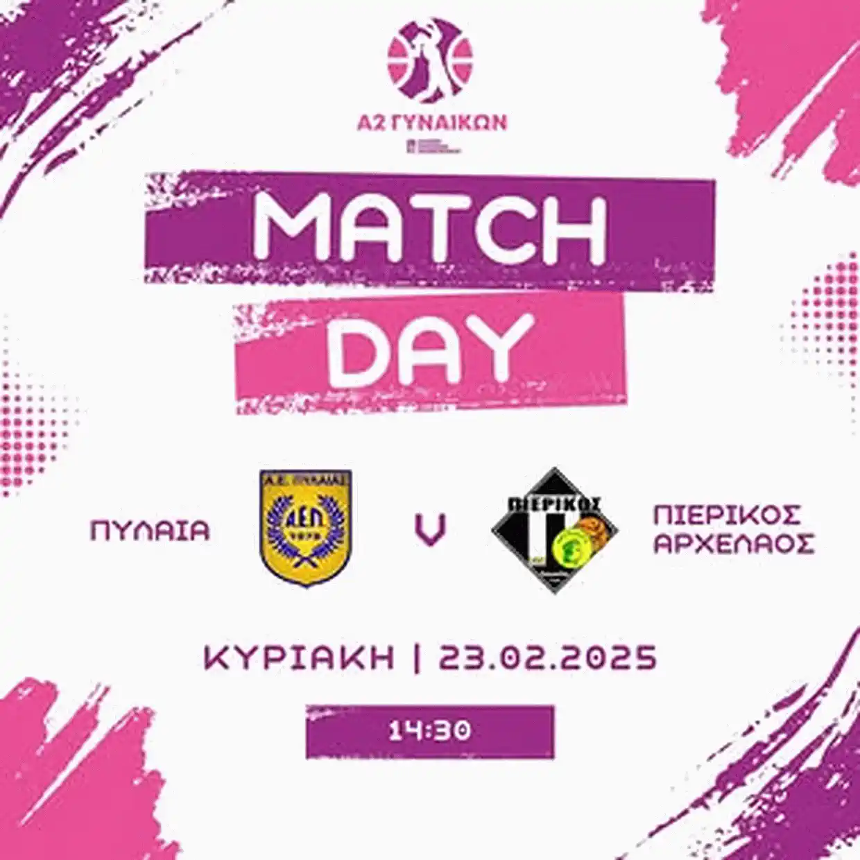 Την Πυλαία (3-13) αντιμετωπίζει ο Πιερικός Αρχέλαος (9-7) την Κυριακή 23 Φεβρουαρίου στις 14:30, στο Κλειστό Γυμναστήριο του Δημοτικού Αθλητικού Κέντρου Πυλαίας, στο πλαίσιο της 19ης αγωνιστικής του 2ου ομίλου της Α2 Εθνικής Κατηγορίας Γυναικών.