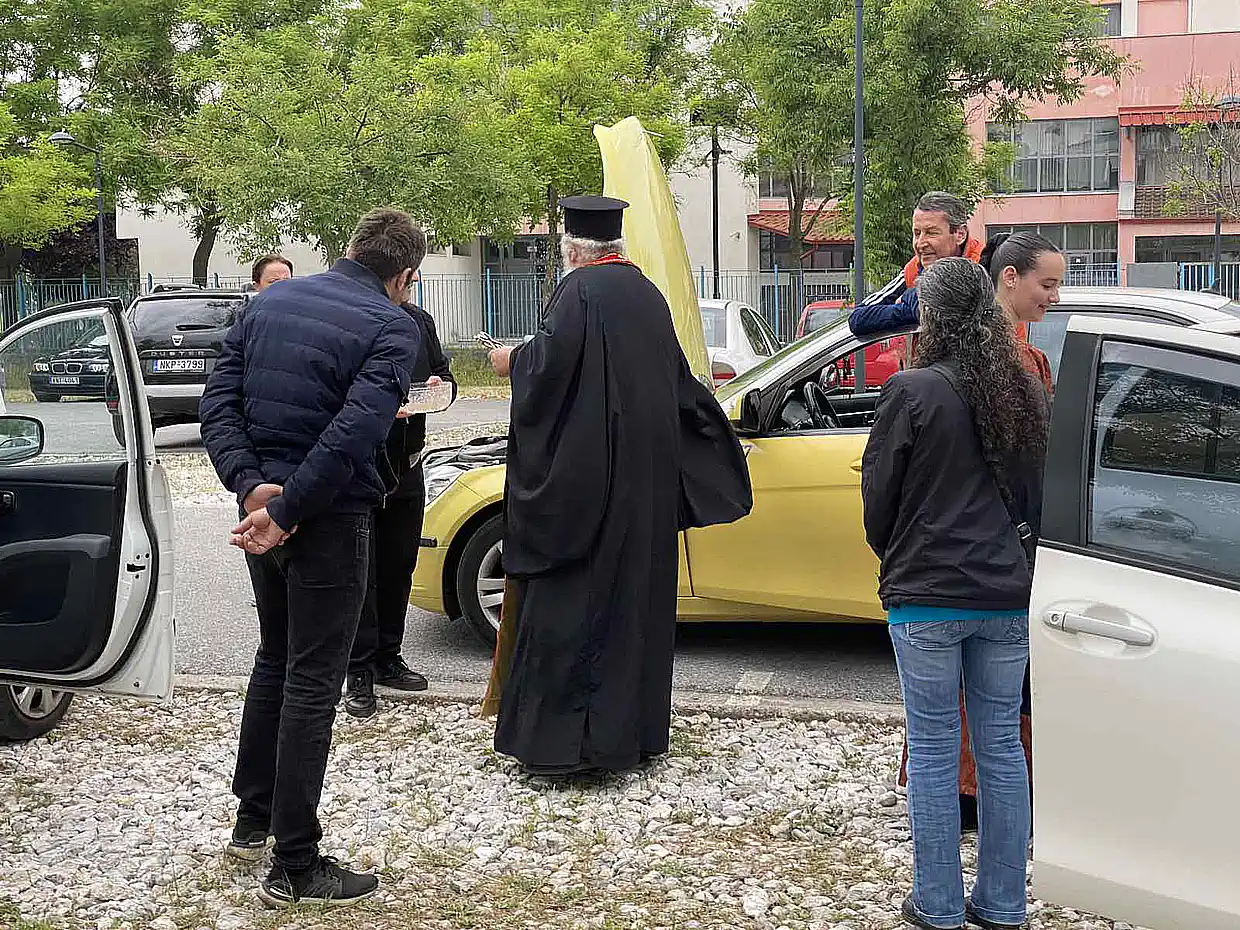 Οι ιερείς άγιασαν αυτοκίνητα ΙΧ, οχήματα της αστυνομίας, ταξί, φορτηγά, αλλά και μηχανάκια, ευλογώντας τους οδηγούς το απόγευμα της ίδιας ημέρας.