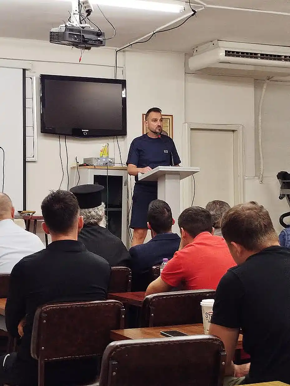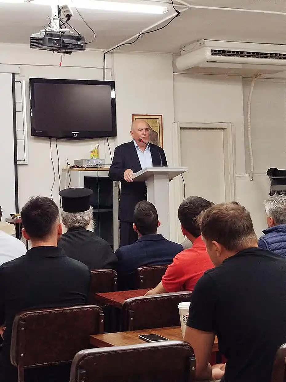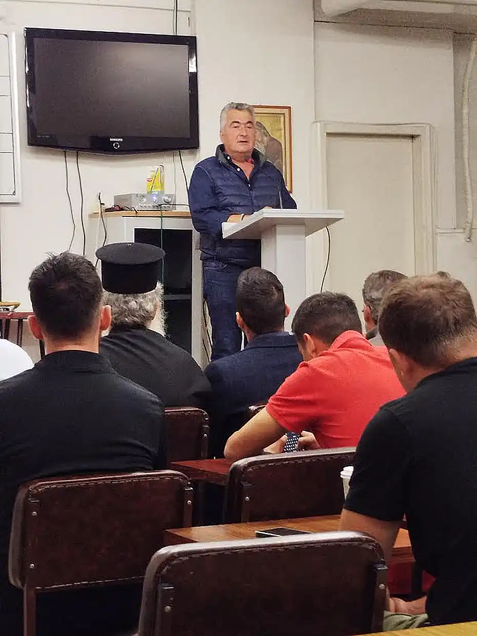 Ο πατήρ Δημήτριος της Ιεράς Ενορίας της Αγίας Άννης συνεπικουρούμενος από τον Αβραάμ Τουλκερίδη μη εν ενεργεία διαιτητή ολοκληρώνοντας το μυστήριο μίλησε με εγκάρδια και μεστά λόγια για το έργο και τον ρόλο της διαιτησίας ευχόμενος πάντα με υγεία να έχουν όλοι μια καλή χρονιά.