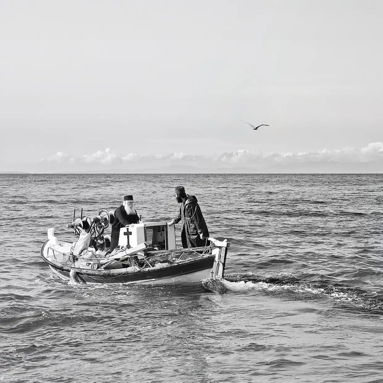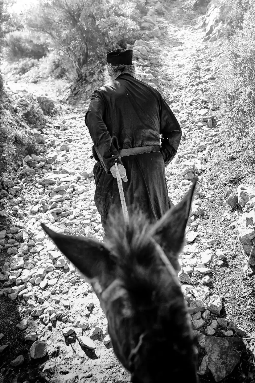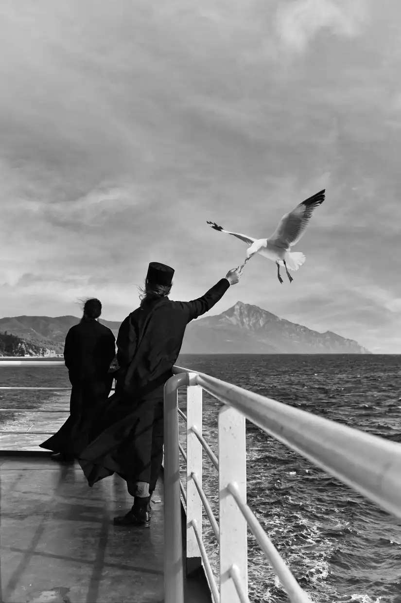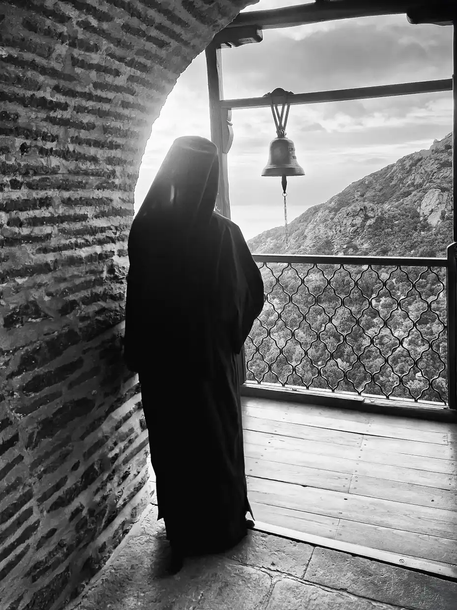 Η έκθεση παρουσιάζει ένα δίχρονο φωτογραφικό οδοιπορικό του Γιάννη Γιαννάτου στο Άγιον Όρος, το οποίο παραχωρήθηκε δωρεά από τον φωτογράφο στην Ιερά Μεγίστη Μονή Βατοπαιδίου, ως πολιτιστική παρακαταθήκη για τις επόμενες γενεές. Μέσα από ασπρόμαυρες εικόνες υψηλής αισθητικής, αποτυπώνονται η καθημερινότητα, τα διακονήματα, η λειτουργική ζωή και το πνευματικό βάθος της μοναστικής πολιτείας.