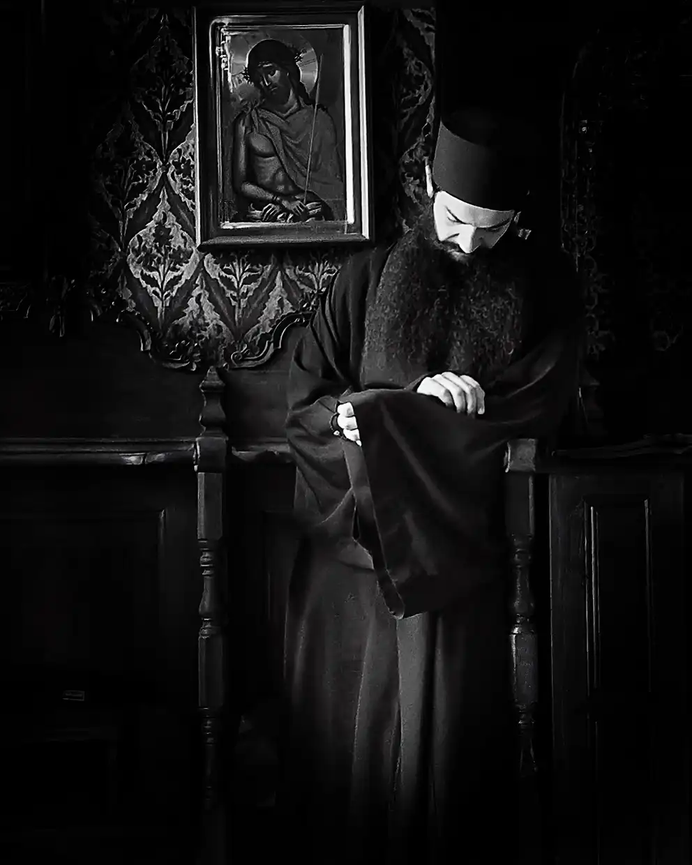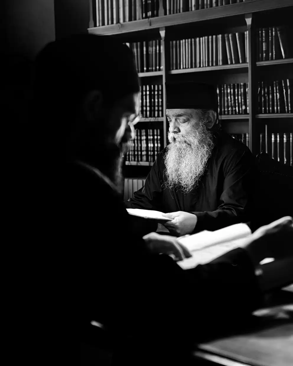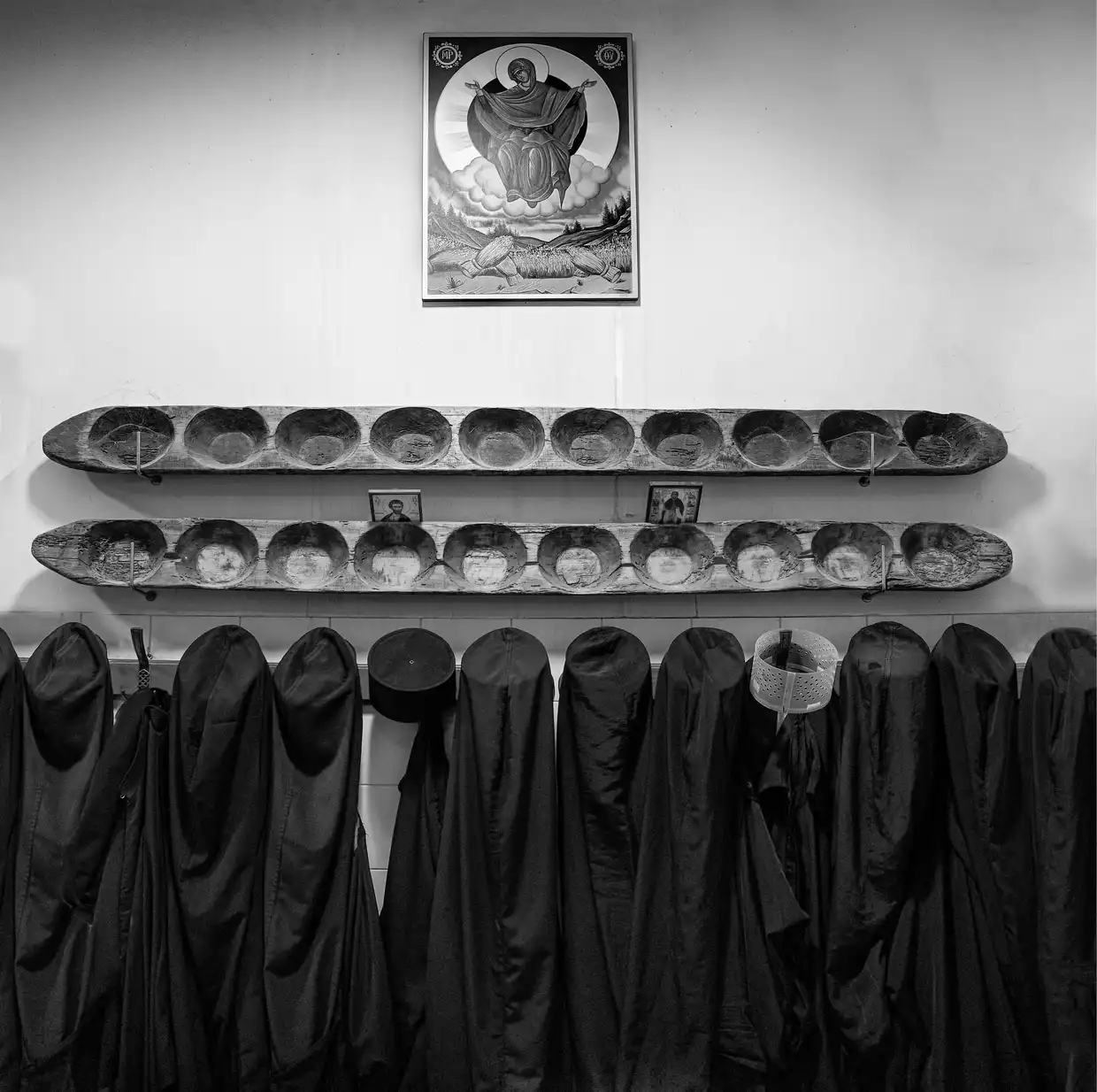 Η έκθεση παρουσιάζει ένα δίχρονο φωτογραφικό οδοιπορικό του Γιάννη Γιαννάτου στο Άγιον Όρος, το οποίο παραχωρήθηκε δωρεά από τον φωτογράφο στην Ιερά Μεγίστη Μονή Βατοπαιδίου, ως πολιτιστική παρακαταθήκη για τις επόμενες γενεές. Μέσα από ασπρόμαυρες εικόνες υψηλής αισθητικής, αποτυπώνονται η καθημερινότητα, τα διακονήματα, η λειτουργική ζωή και το πνευματικό βάθος της μοναστικής πολιτείας.