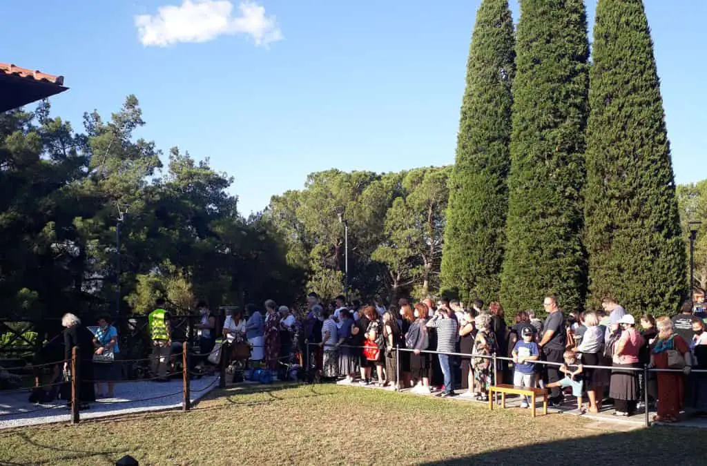 Πλήθος πιστών έχει συγκεντρωθεί στην Ιερά Μονή Αγίου Ιωάννου Θεολόγου στη Σουρωτή Θεσσαλονίκης για να προσκυνήσει τον τάφο του Αγίου Παΐσιου που γιορτάζει σήμερα (σσ χτες 12/7).