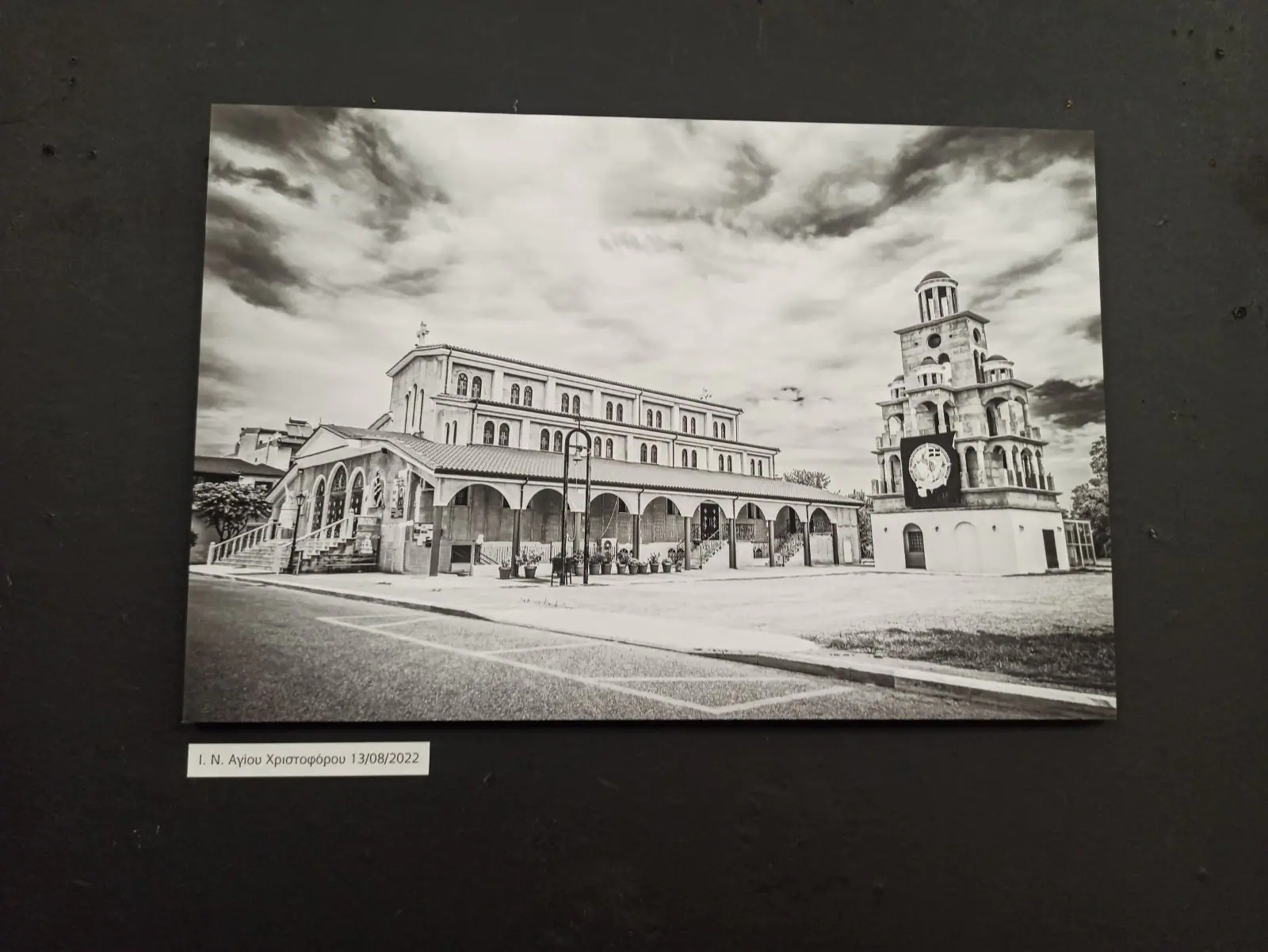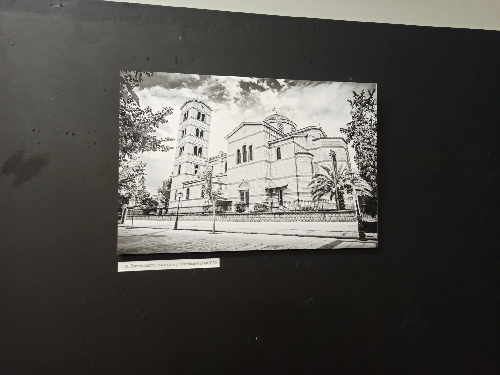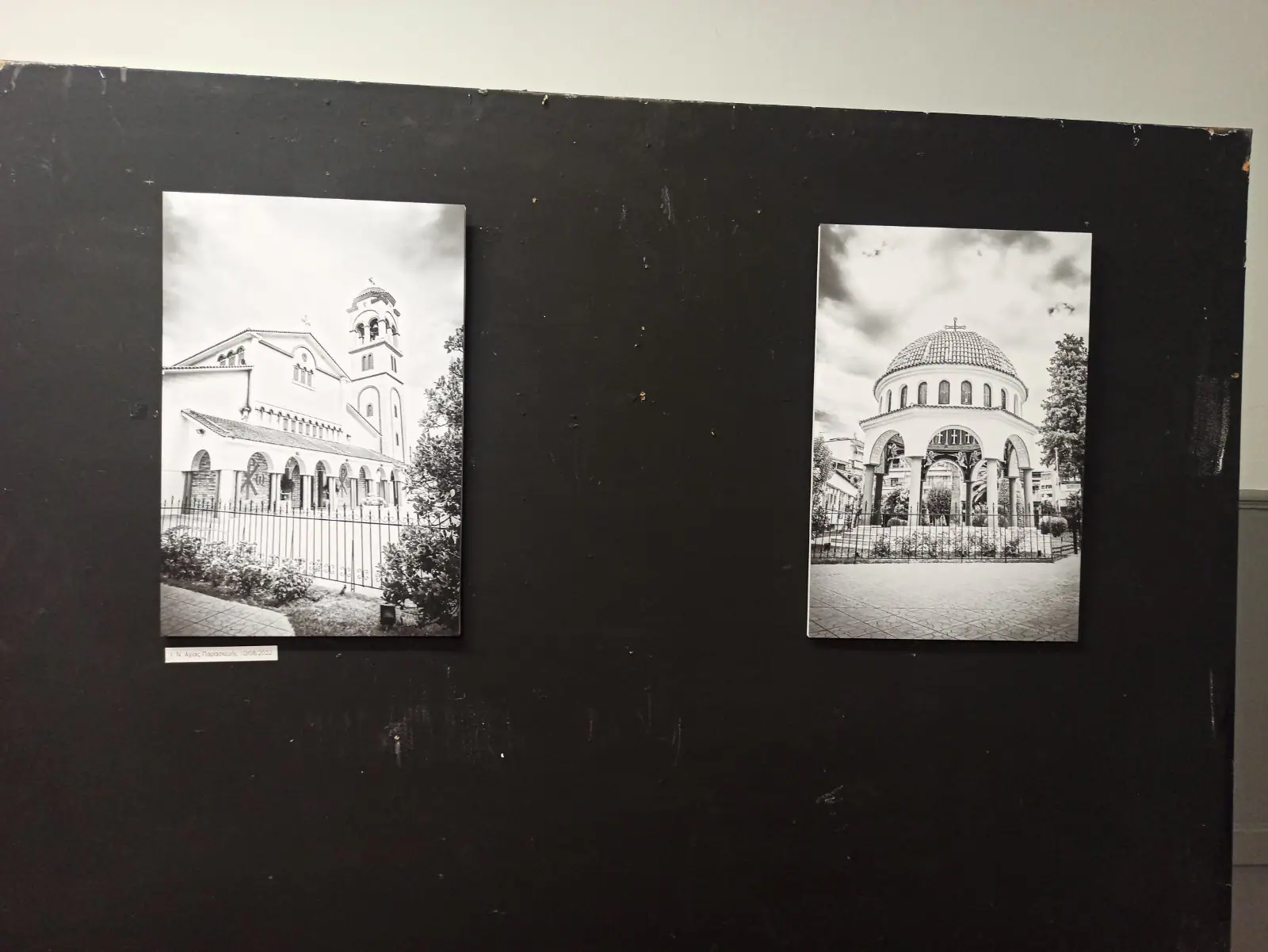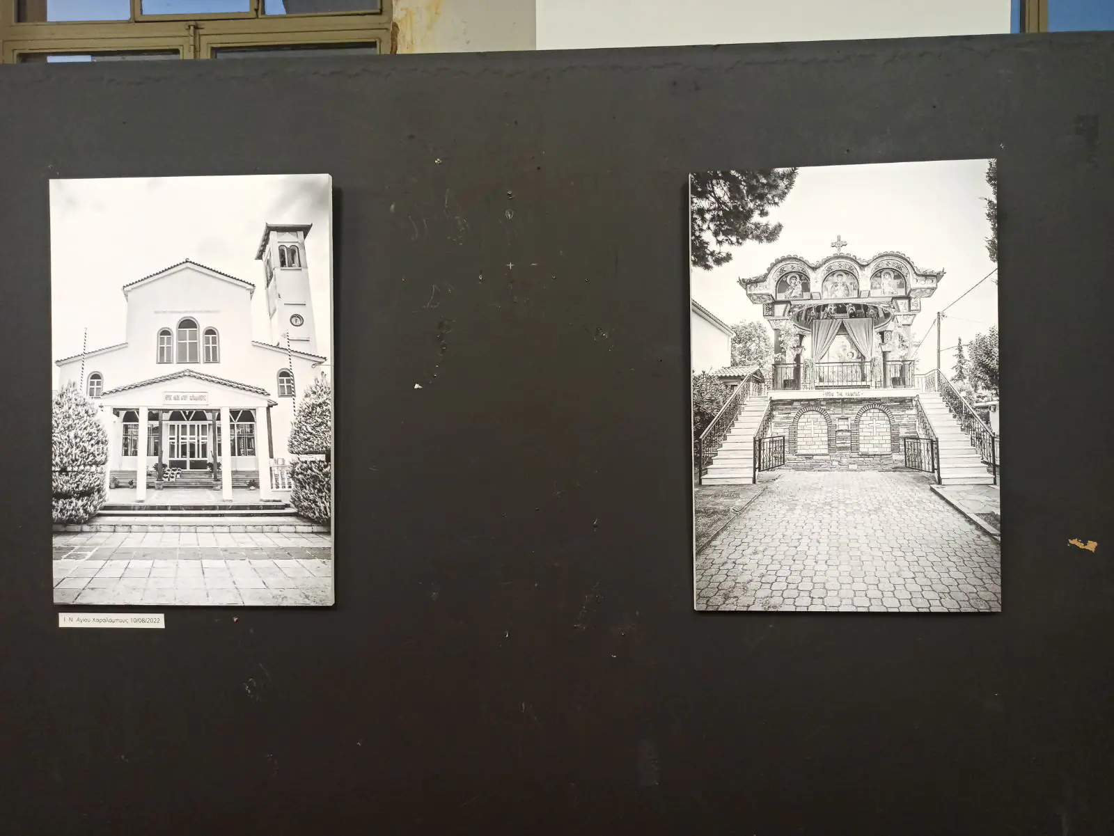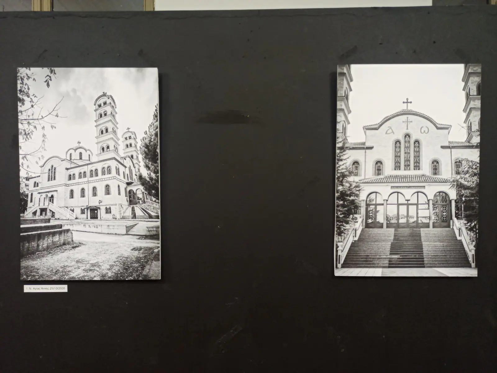 Στον χώρο της Αστικής Σχολής φιλοξενούνται 18 ασπρόμαυρες φωτογραφίες των Ιερών Ναών της Κατερίνης, δίνοντας στο φιλοθεάμον κοινό μία γεύση της ιδιαίτερης προσέγγισης της εκκλησίας από τον καλλιτέχνη. Την Έκθεση προλόγισε η εκπαιδευτικός Ζωή Κουτσουρά, ενώ την εκδήλωση χαιρέτησαν και ο Πρόεδρος του Οργανισμού Πολιτισμού (ΟΠΠΑΠ) Δήμου Κατερίνης, Γιάννης Νταντάμης, η Βουλευτής Πιερίας Ελισάβετ (Μπέττυ) Σκούφα, η Αντιπεριφερειάρχης Σοφία Μαυρίδου κ.α.