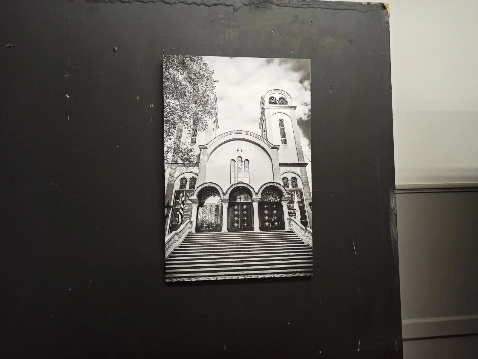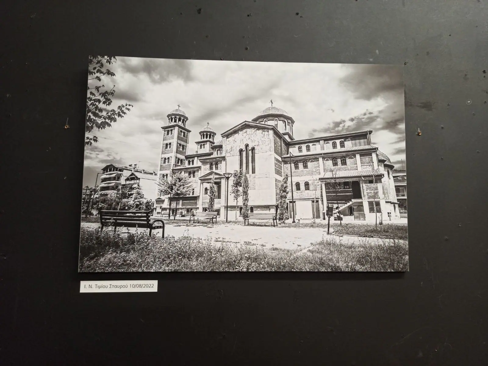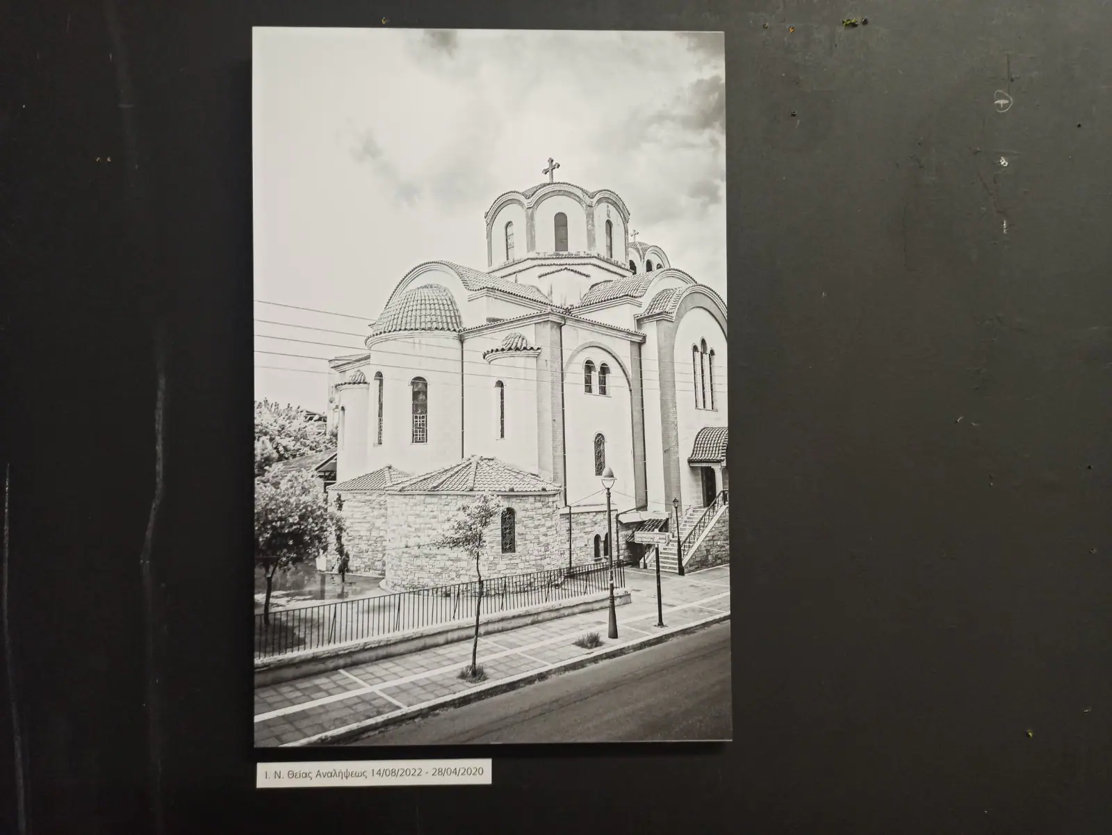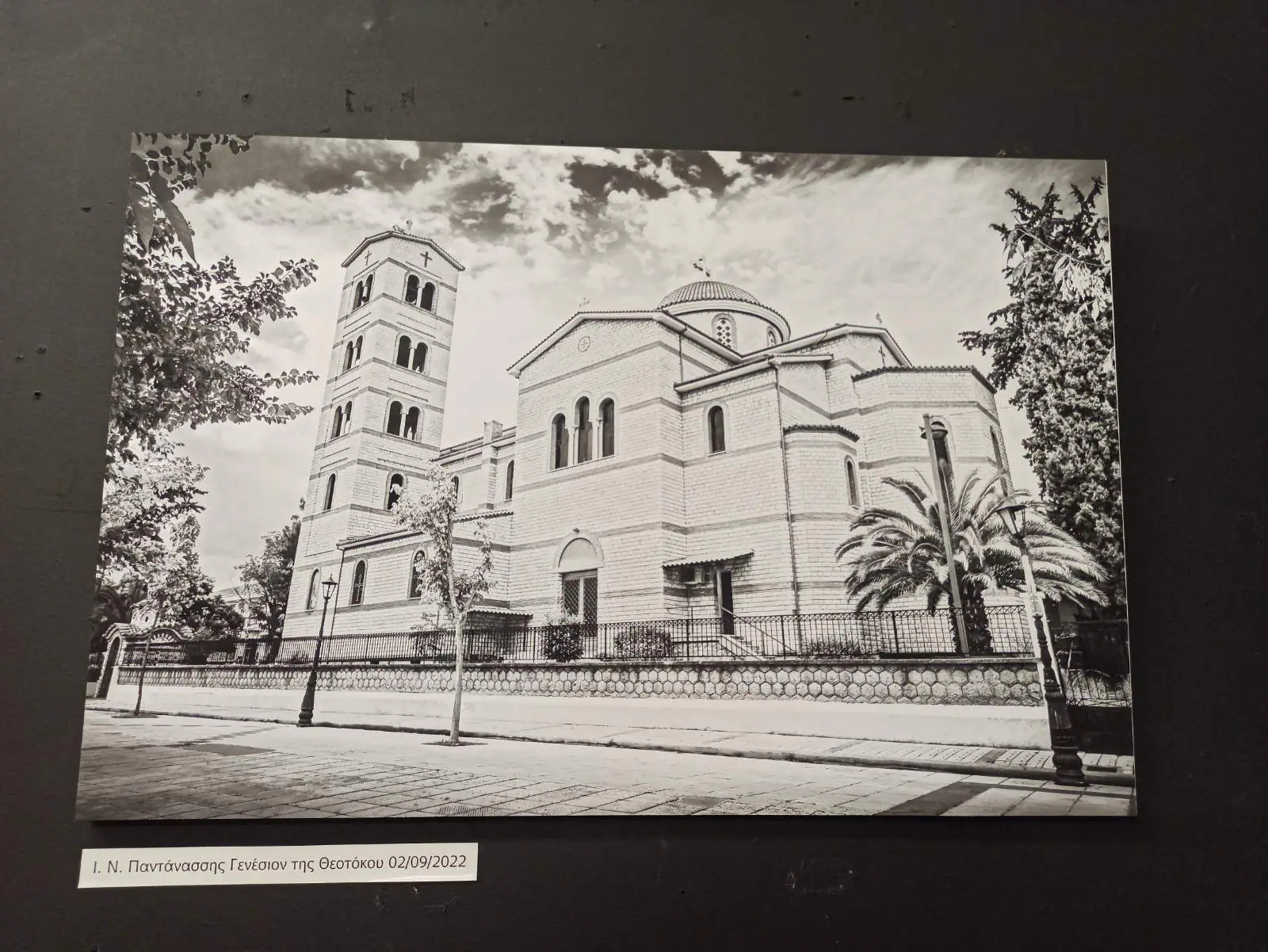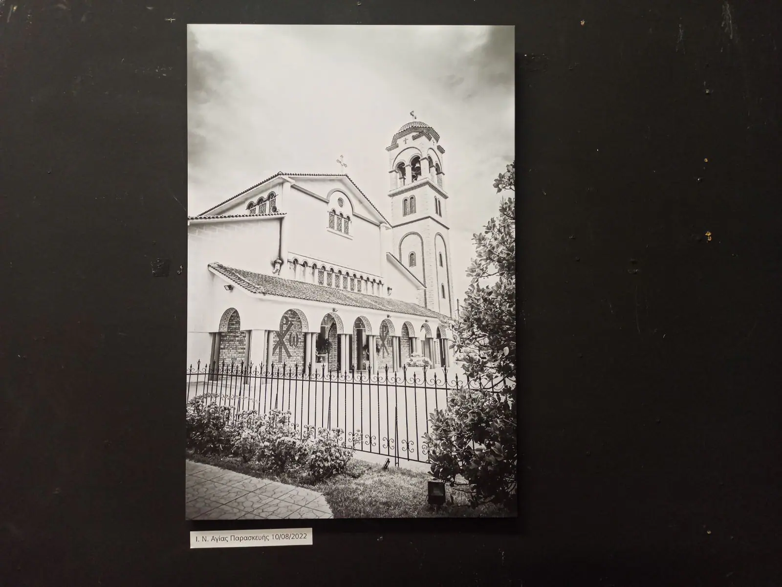 Στον χώρο της Αστικής Σχολής φιλοξενούνται 18 ασπρόμαυρες φωτογραφίες των Ιερών Ναών της Κατερίνης, δίνοντας στο φιλοθεάμον κοινό μία γεύση της ιδιαίτερης προσέγγισης της εκκλησίας από τον καλλιτέχνη. Την Έκθεση προλόγισε η εκπαιδευτικός Ζωή Κουτσουρά, ενώ την εκδήλωση χαιρέτησαν και ο Πρόεδρος του Οργανισμού Πολιτισμού (ΟΠΠΑΠ) Δήμου Κατερίνης, Γιάννης Νταντάμης, η Βουλευτής Πιερίας Ελισάβετ (Μπέττυ) Σκούφα, η Αντιπεριφερειάρχης Σοφία Μαυρίδου κ.α.